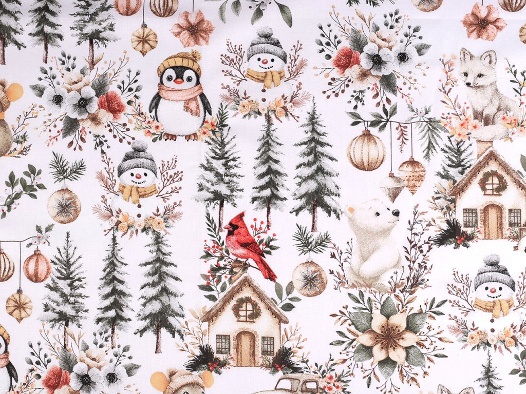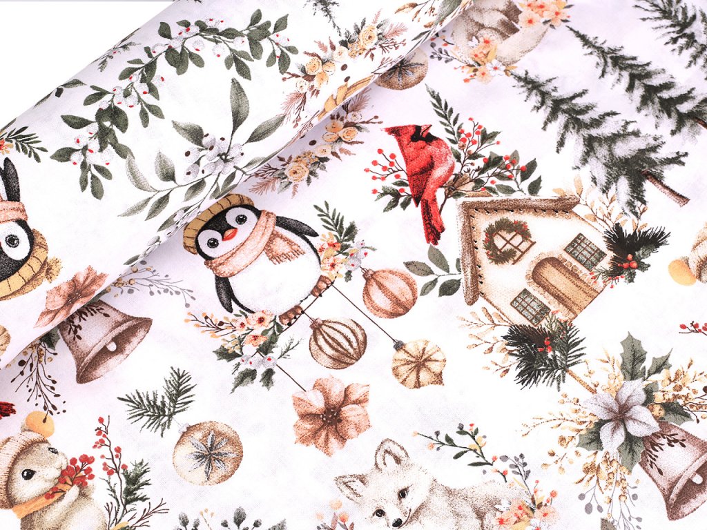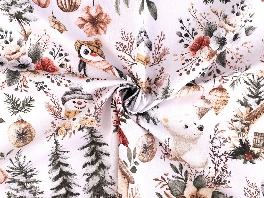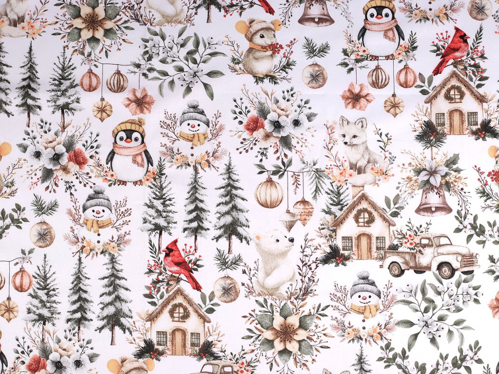 Bavlněná látka vás svými milými vánočními motivy přenese do kouzelné zimy. Můžete z ní ušít různé vánoční dekorace, ubrusy, polštáře, ložní povlečení, pytlíčky apod. Ušité výrobky dodají vašemu domovu útulnou atmosféru.