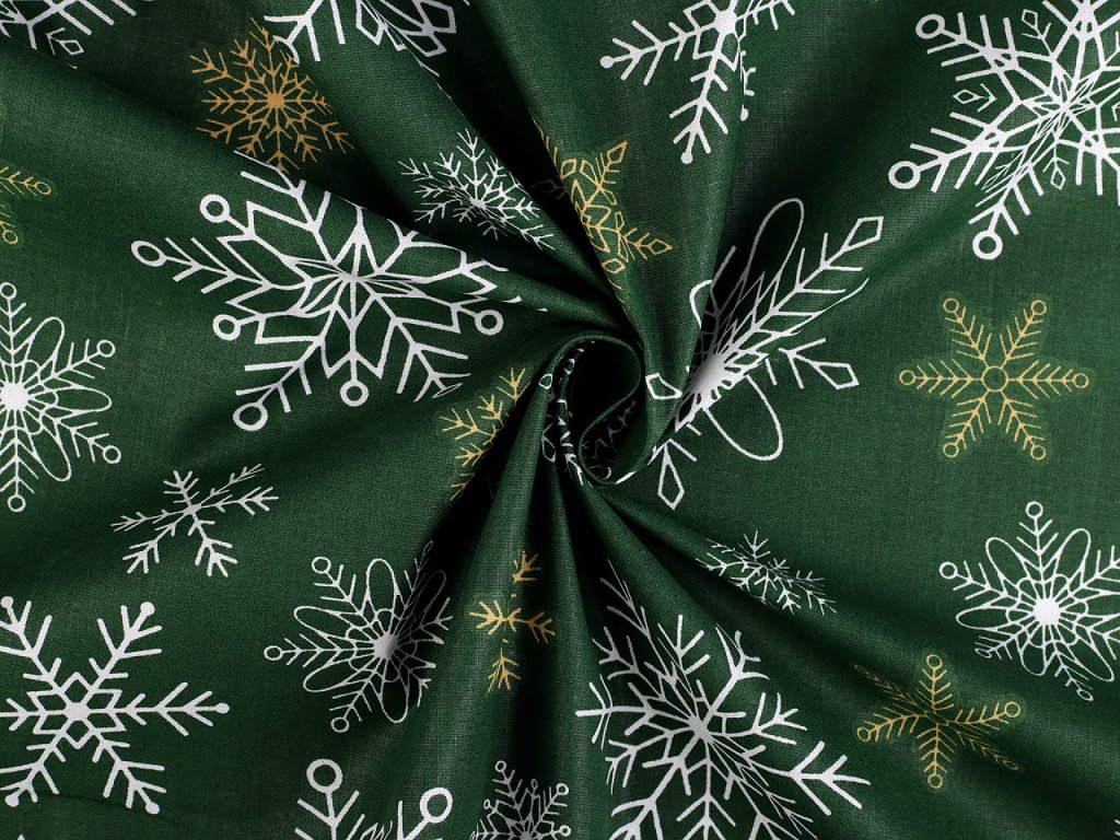 Z bavlněného plátna s vločkami můžete ušít různé vánoční dekorace, ubrusy, polštáře, povlečení, pytlíčky apod. Ušité výrobky dodají vašemu domovu sváteční atmosféru.