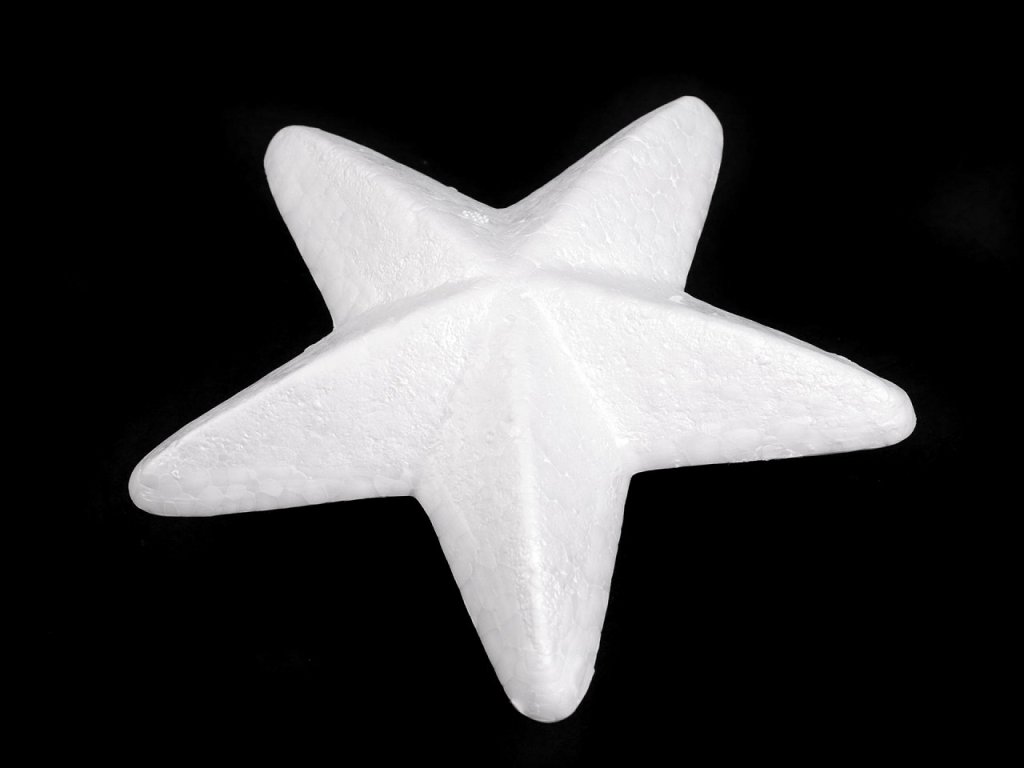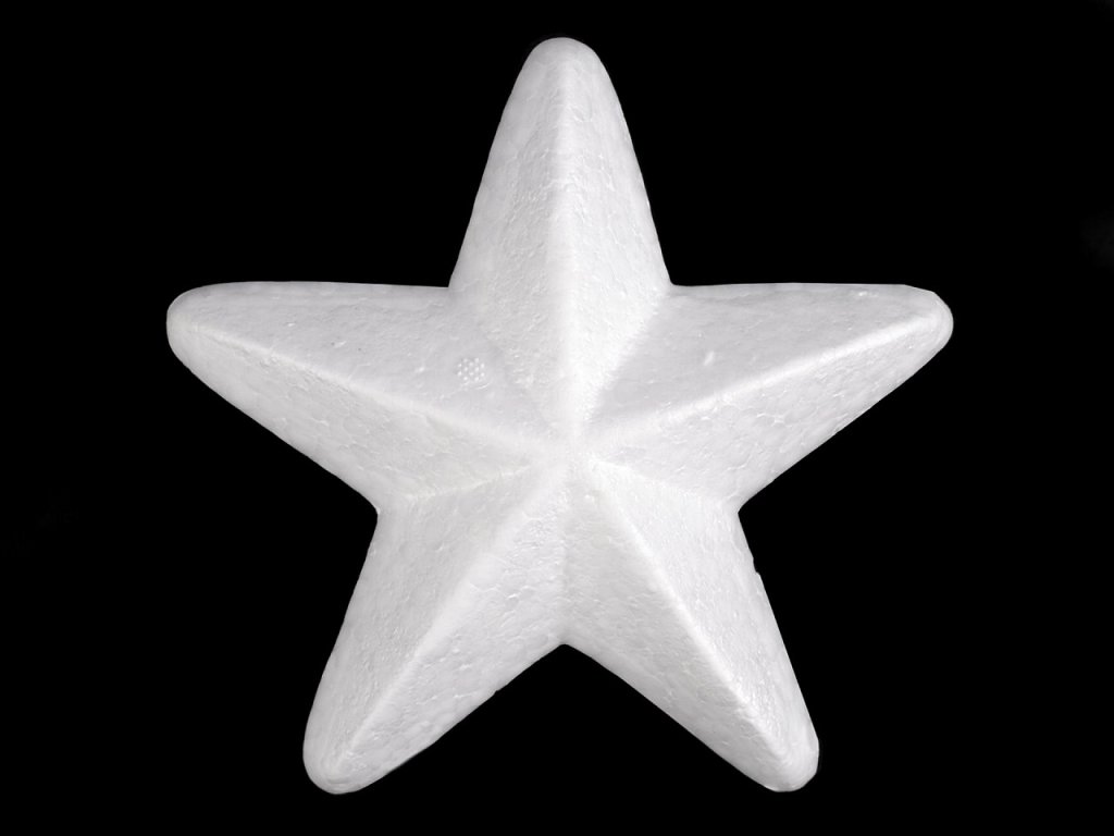 Polystyrenová hvězda je skvělým pomocníkem při tvorbě dekorací. Její povrch je 3D tvarovaný, skvěle vynikne, když se ozdobí glitry, malbou nebo technikou decoupage.