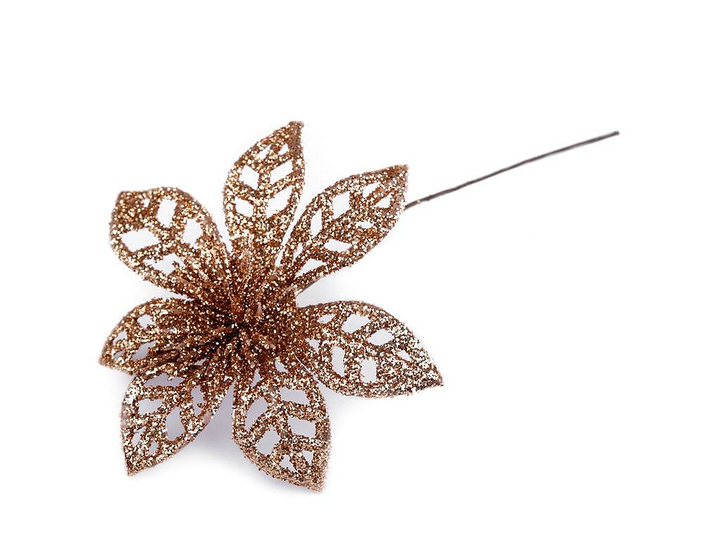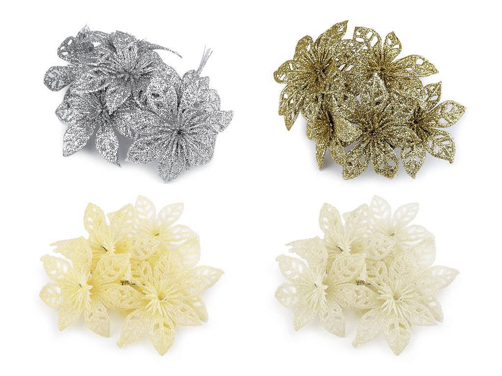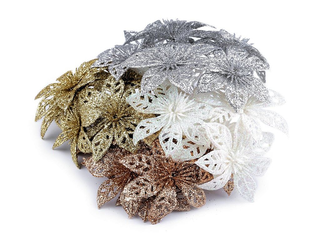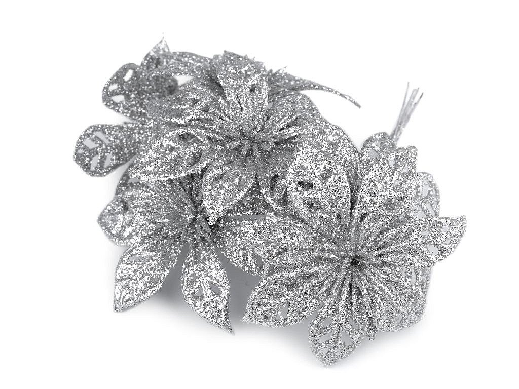 Třpytivá vánoční hvězda dodá vašemu vánočnímu interiéru nádech luxusu a elegance. S pomocí zářivých glitrů oživí vánoční vazby, věnce, sváteční tabule či vánoční stromečky. Stonek hvězdy se dá lehce tvarovat díky ohebnému drátku.