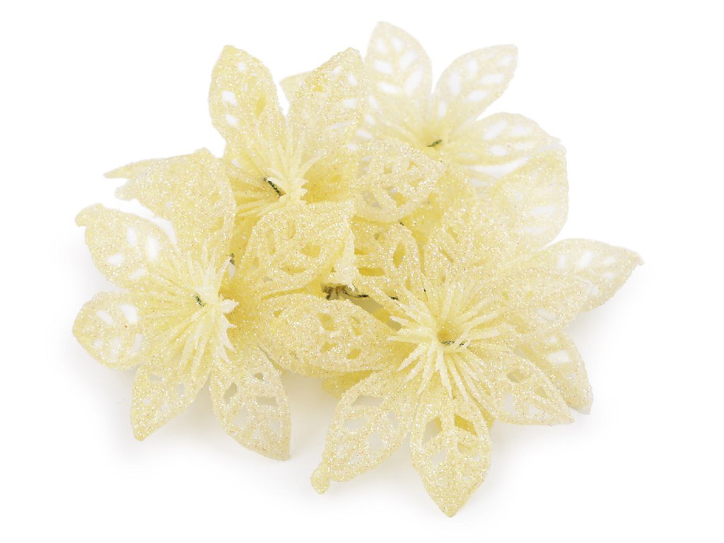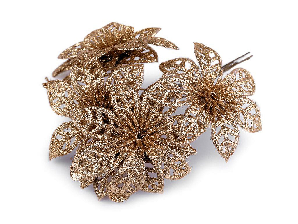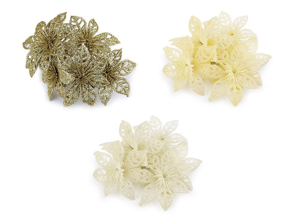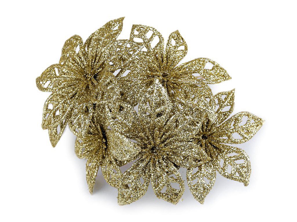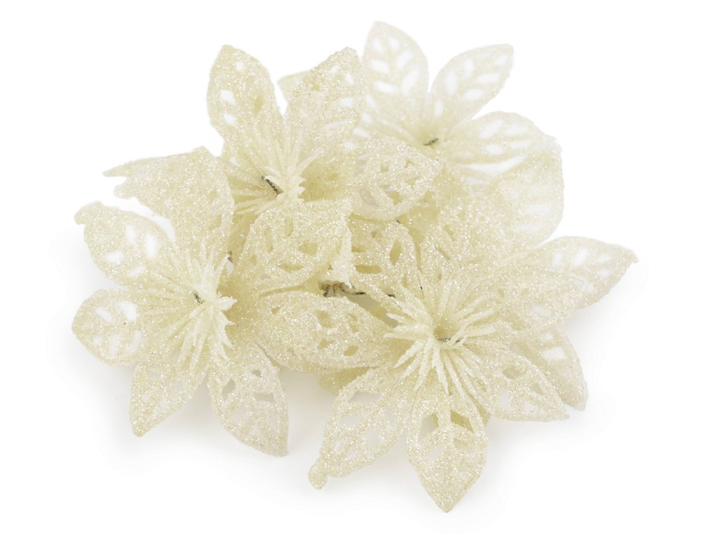 Třpytivá vánoční hvězda dodá vašemu vánočnímu interiéru nádech luxusu a elegance. S pomocí zářivých glitrů oživí vánoční vazby, věnce, sváteční tabule či vánoční stromečky. Stonek hvězdy se dá lehce tvarovat díky ohebnému drátku.