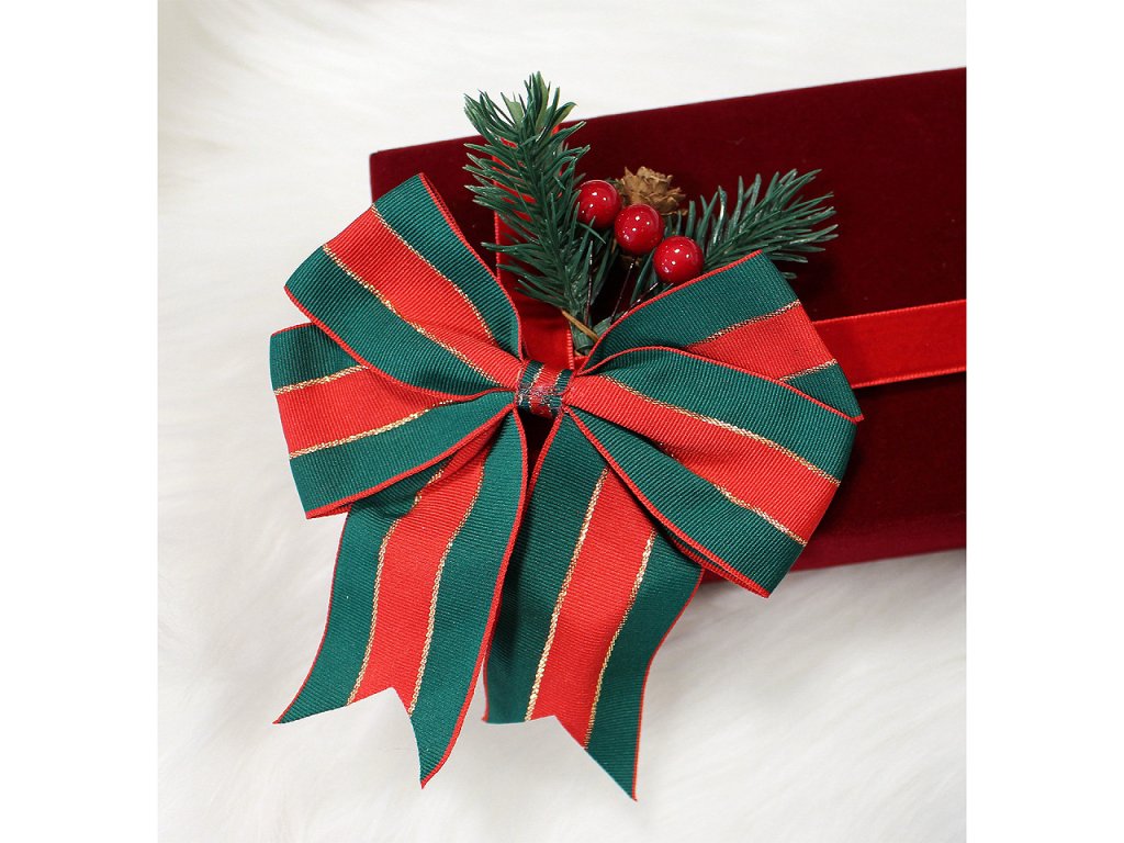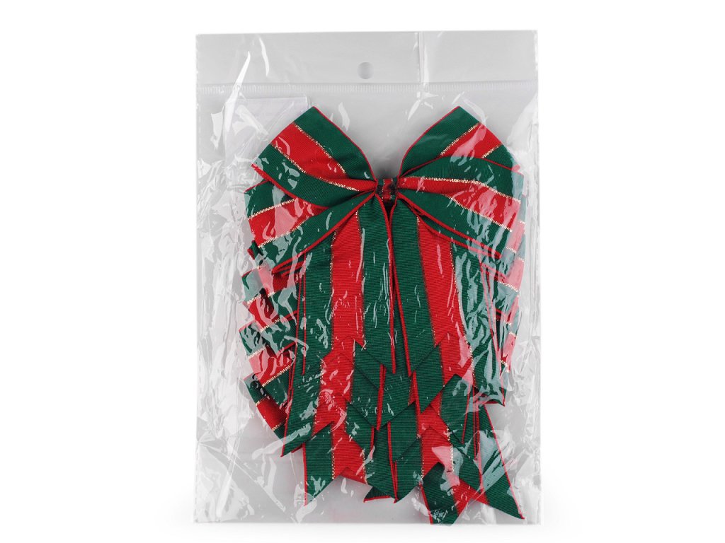 Rypsová vánoční mašle elegantně doladí sváteční věnce, svícny, truhlíky, zabalené dárky, dekorační polštáře, ubrusy i stromeček. Díky lurexovým detailům se jemně třpytí.