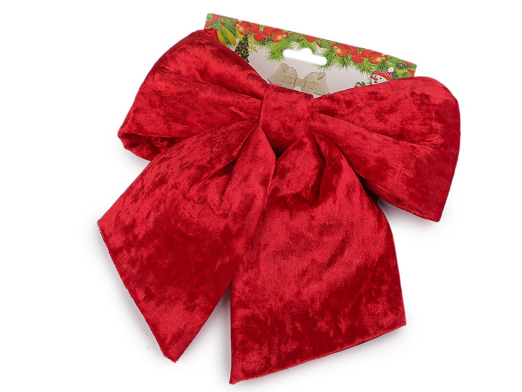Sametová vánoční mašle vyniká svým elegantním vzhledem a působivou velikostí. Slavnostně ozdobí stromeček, dekorační věnce, dveře, židle, velké dárky apod. Připevníte ji lurexovým drátkem, který je součástí mašle.