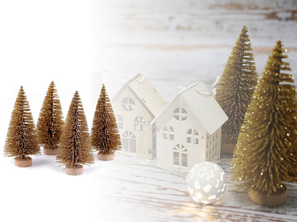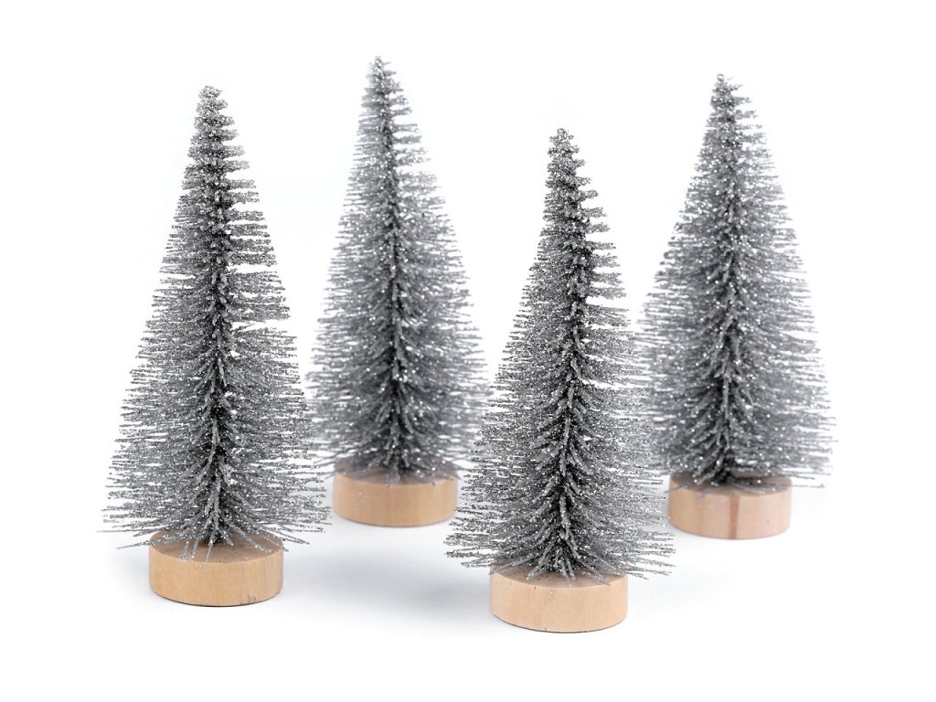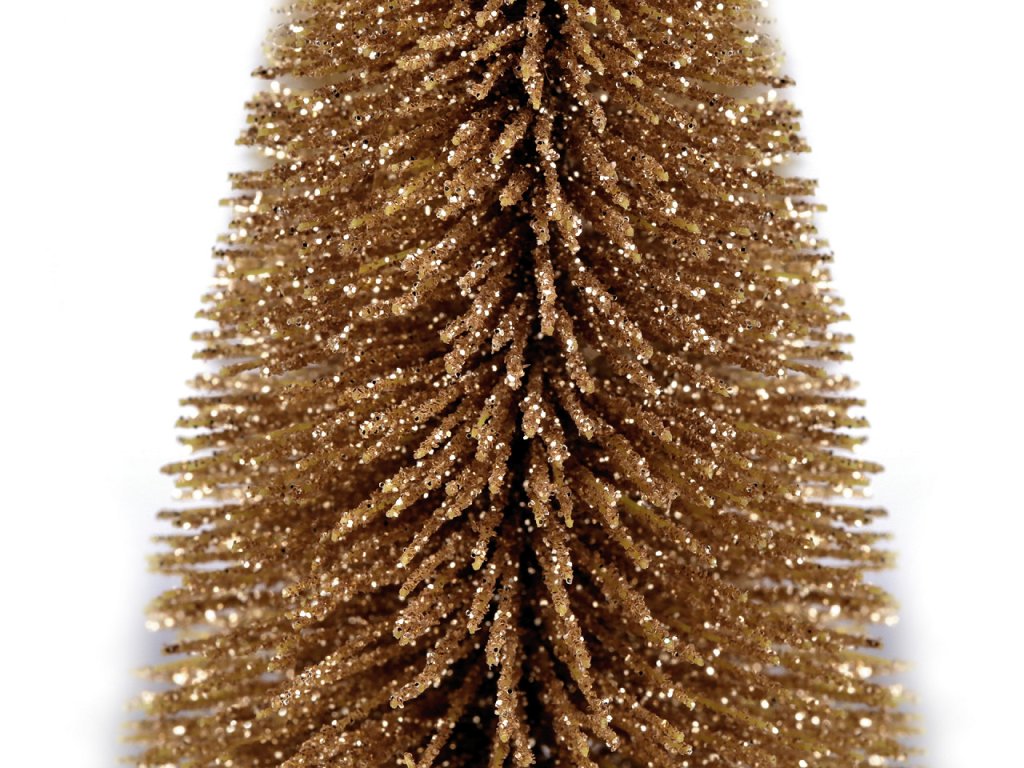Dekorační mini stromeček se díky glitrům celý třpytí. Má dobrou stabilitu a vynikne na sváteční tabuli a v různých vánočních aranžmá.
