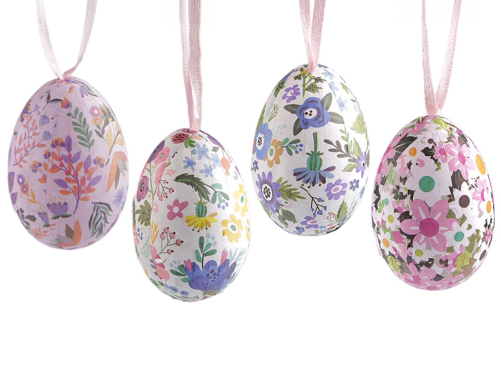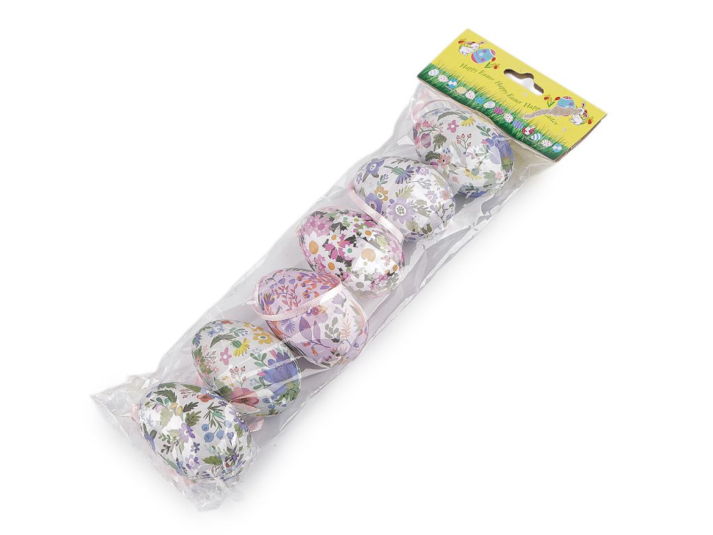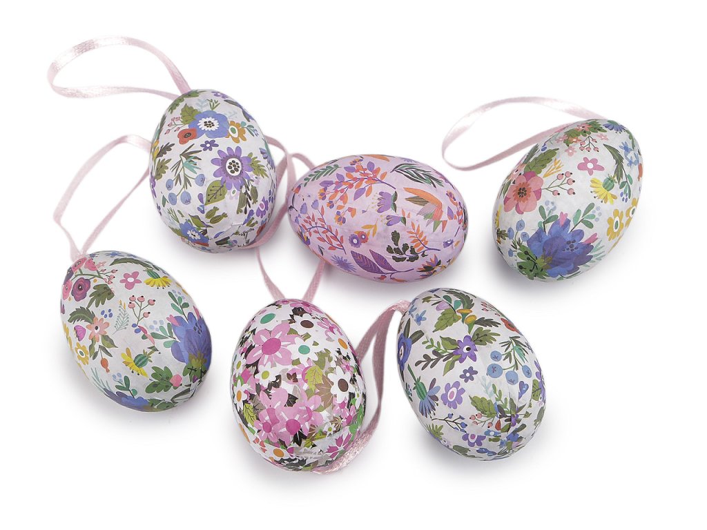 Velikonoční vajíčka s květinovým designem jsou opatřená poutkem pro snadné zavěšení, což umožňuje jejich umístění na větvičky ve váze, věnce nebo do jarních aranžmá. Květinové motivy dodají interiéru svěží a veselou atmosféru jara.