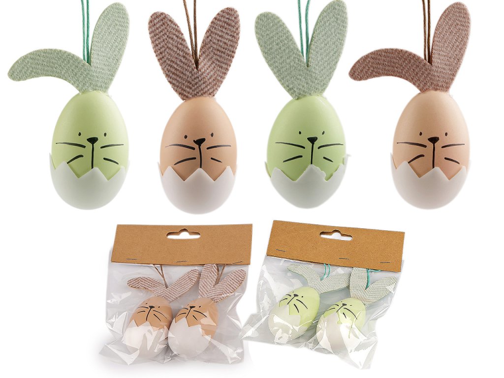 Velikonoční vajíčka v podobě zajíčků vnesou do vašeho domova kouzlo jarních svátků. Jsou lehká a mají poutko, za které je pohodlně zavěsíte na větvičky ve váze, stromky nebo dekorativní věnce.