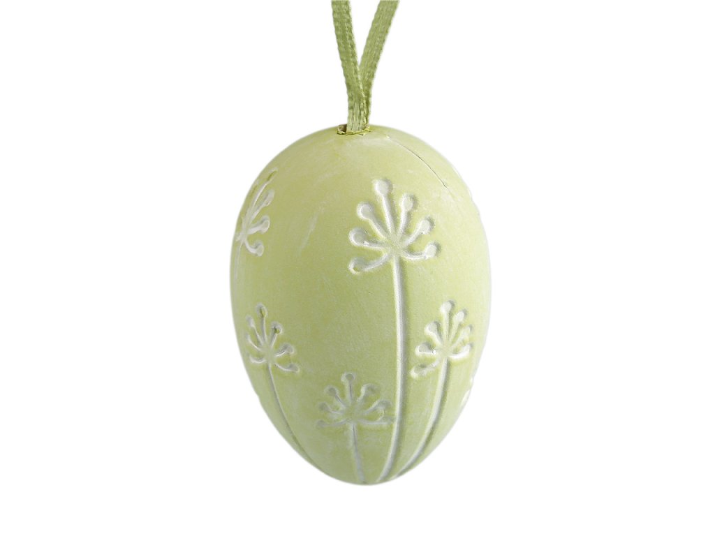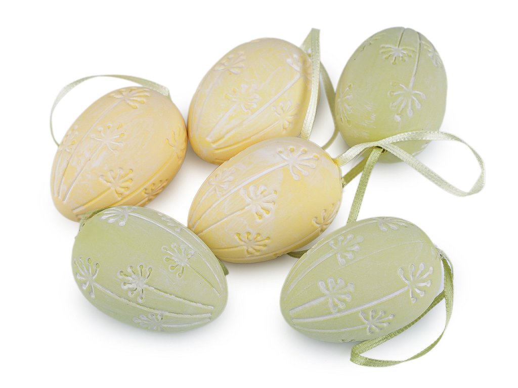 Velikonoční vajíčka s vyrytým motivem mají poutko pro snadné a rychlé zavěšení, což umožňuje jejich umístění na větvičky ve váze, věnce nebo do jarních aranžmá. Vajíčka dodají interiéru svěží a veselou atmosféru jara.