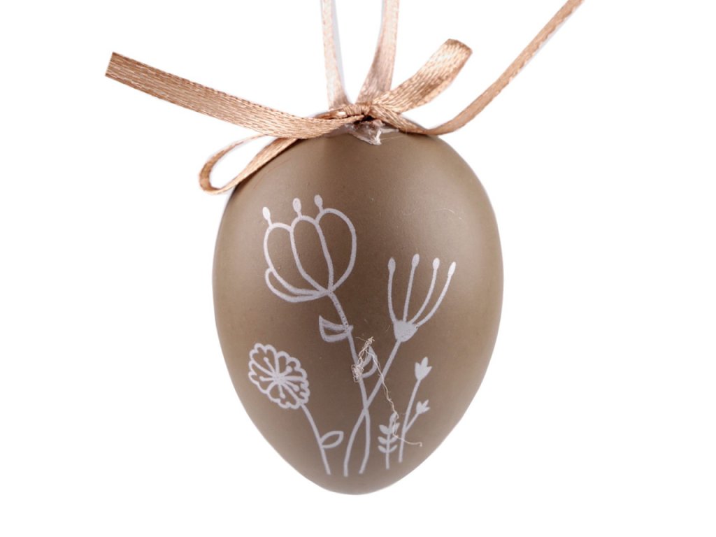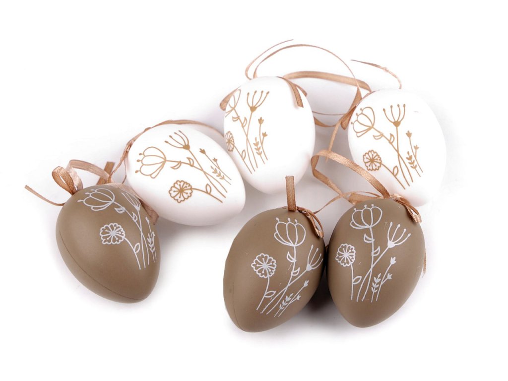 Velikonoční vajíčka s potiskem květin můžete díky poutku ze saténové stuhy pověsit na větvičky ve váze, věnce, do oken apod. Jsou lehká. Potisk je oboustranný.