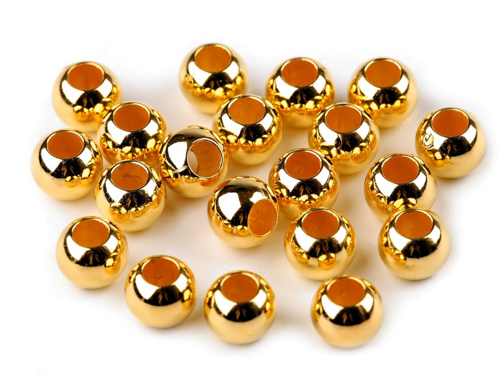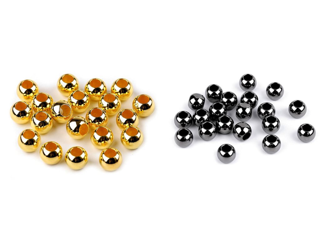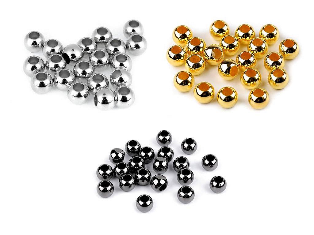 Plastové korálky s velkým průvlekem mají vysoký lesk, který věrně imituje opravdový kov.