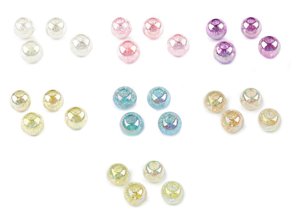 Velké plastové korálky nadchnou děti i dospělé. Jsou doslova magické, protože mají vysoký lesk s AB efektem, navíc uvnitř mají působivé kraklé - praskliny, které se lidově nazývají práskačky. Korálky jsou velice kvalitní, všude hladké, nemají žádné otřepení nebo viditelné švy. Našim fotografům se fotografie velmi povedly, ale věřte, že ve skutečnosti jsou korálky ještě zajímavější.