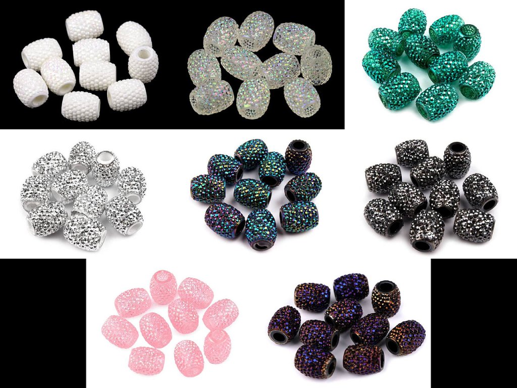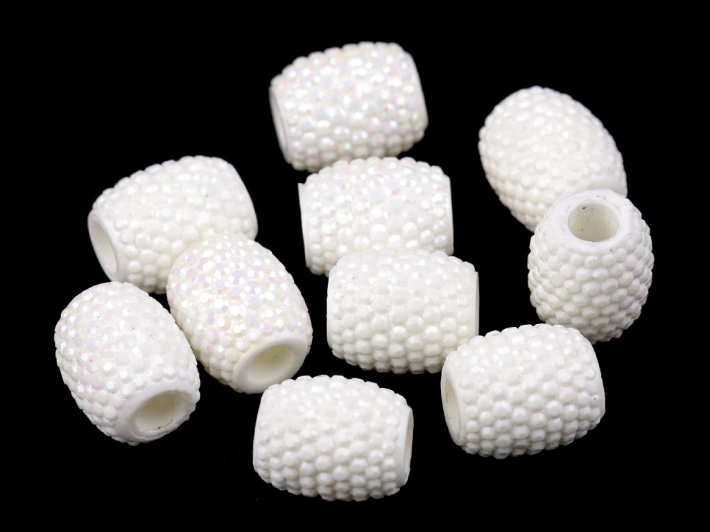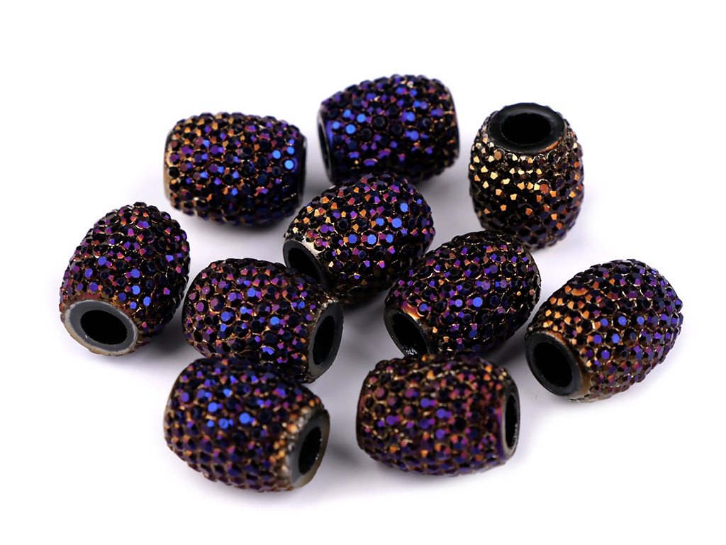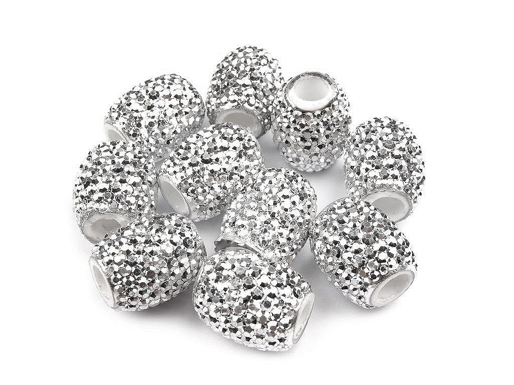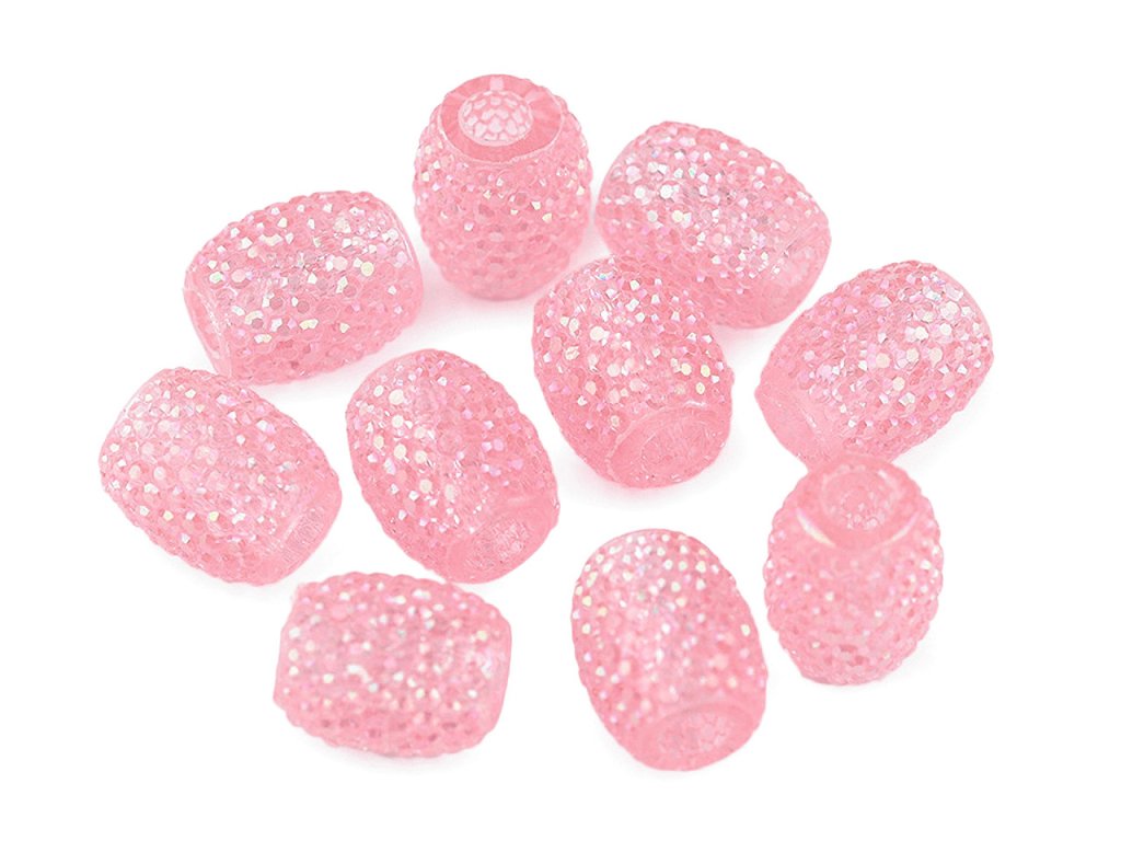 Transparentní korálky s velkým průvlekem ve tvaru olivy mají díky drobných plošek výrazný lesk. Navíc mají povrch s AB efektem, jenž způsobuje vysoký duhový třpyt korálku.