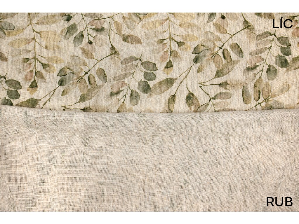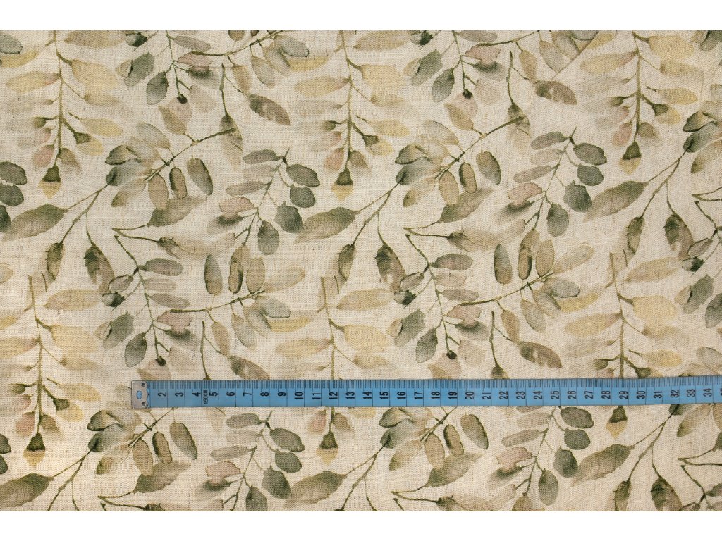 Viskózová tkanina s příměsí lnu zelené listí na pískové