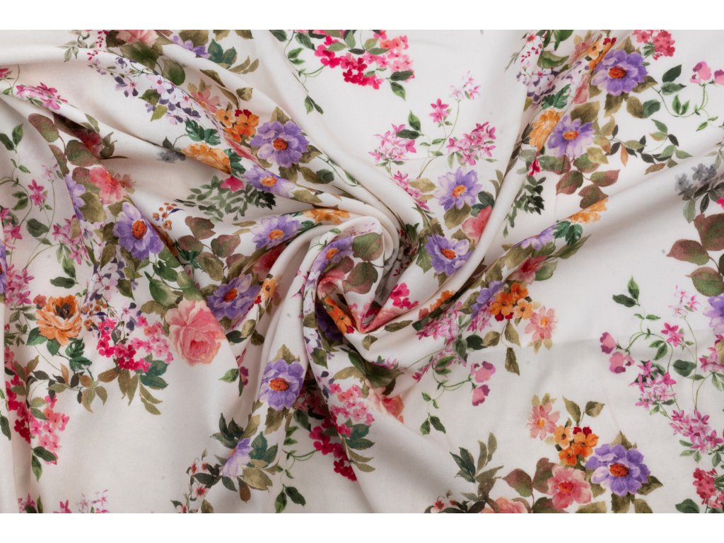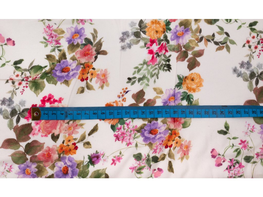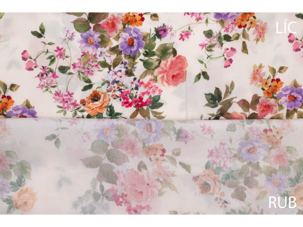 Viskózová tkanina zahradní růže na bílé