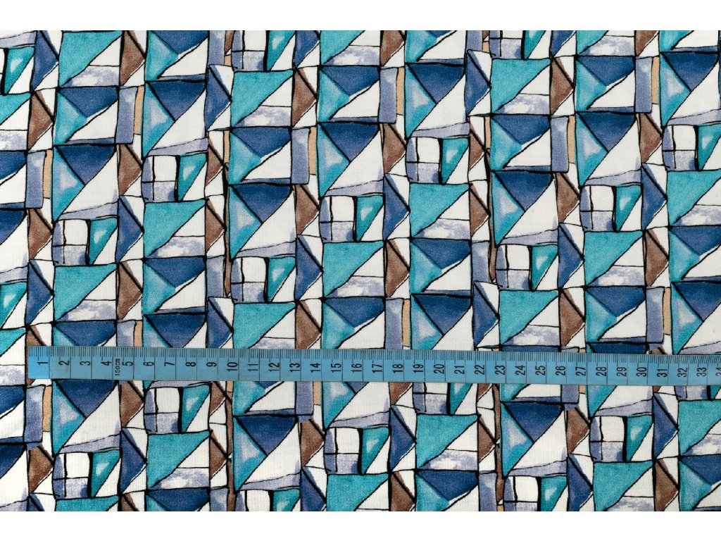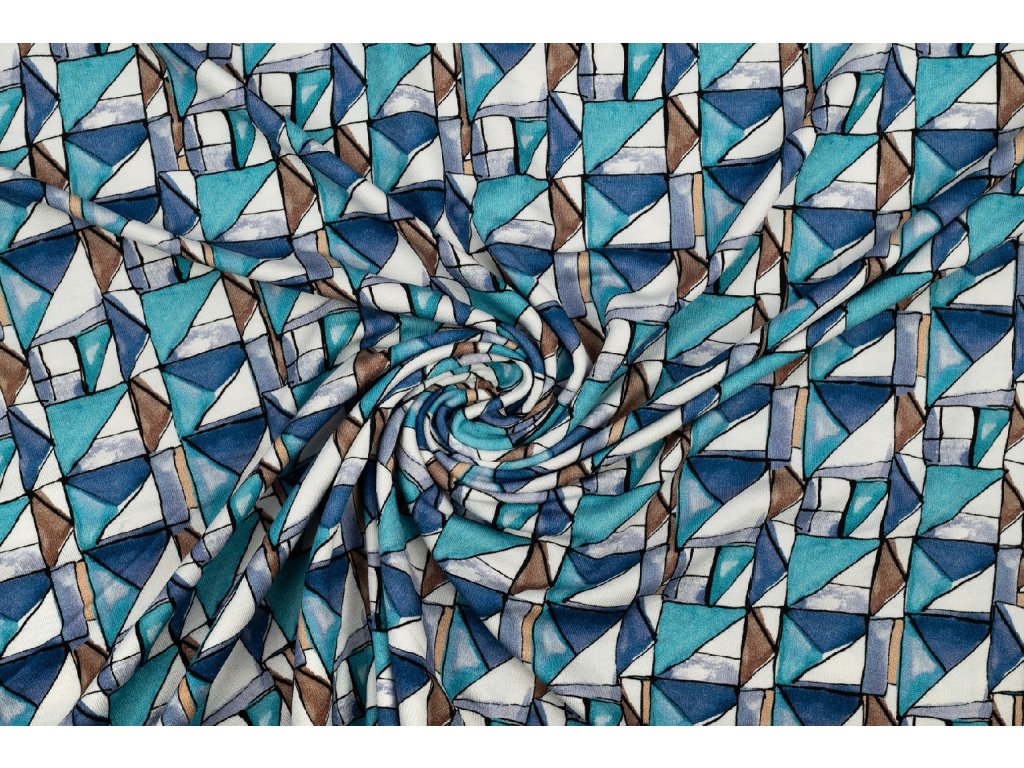 Úplet viskózový abstraktní geometrie modrá