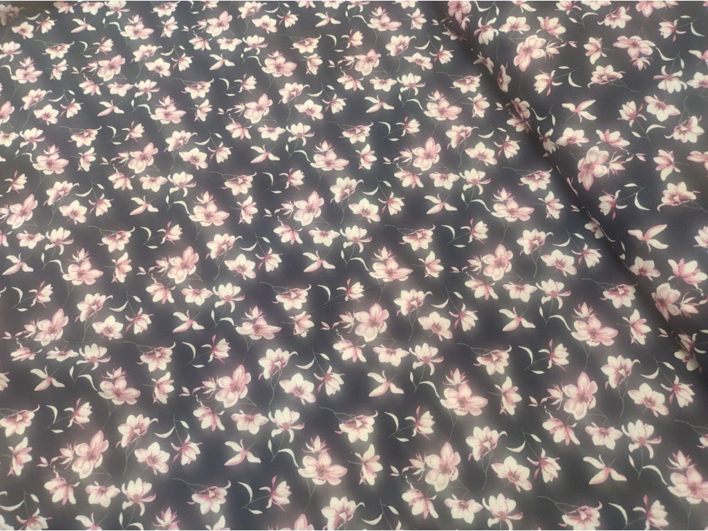 Úplet viskózový cyklámenovo bílé drobné kytky na modré
