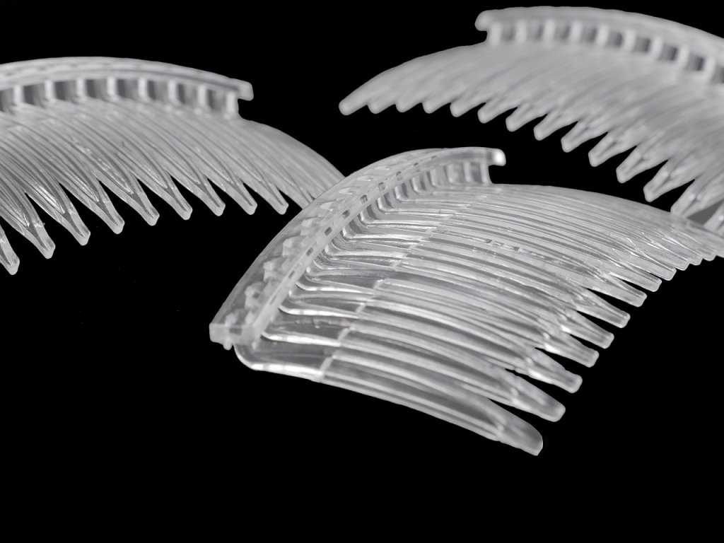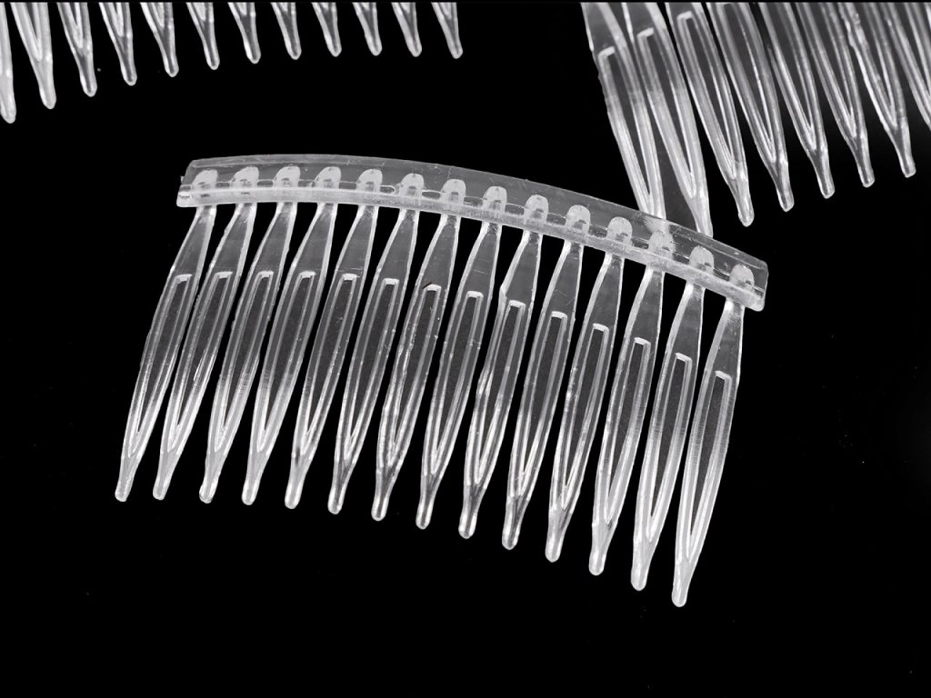 Plastové hřebínky do vlasů o rozměru 45 x 70 mm v krystalové barvě. Můžete si je dotvořit podle vlastní fantazie. Můžete je ozdobit štrasem, hotfixovými kamínky či jinou zajímavou ozdobou. Vhodné jsou také do kadeřnických salónů. Při velmi šetrném zacházení se dají použít také k rozčesávání vlasů.