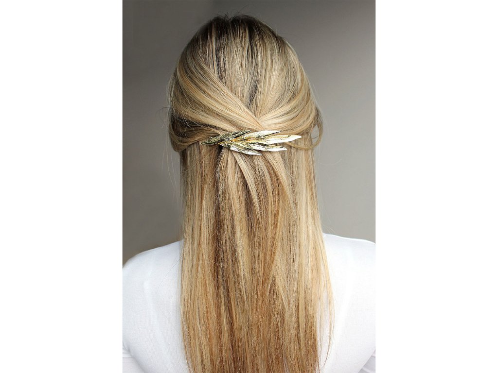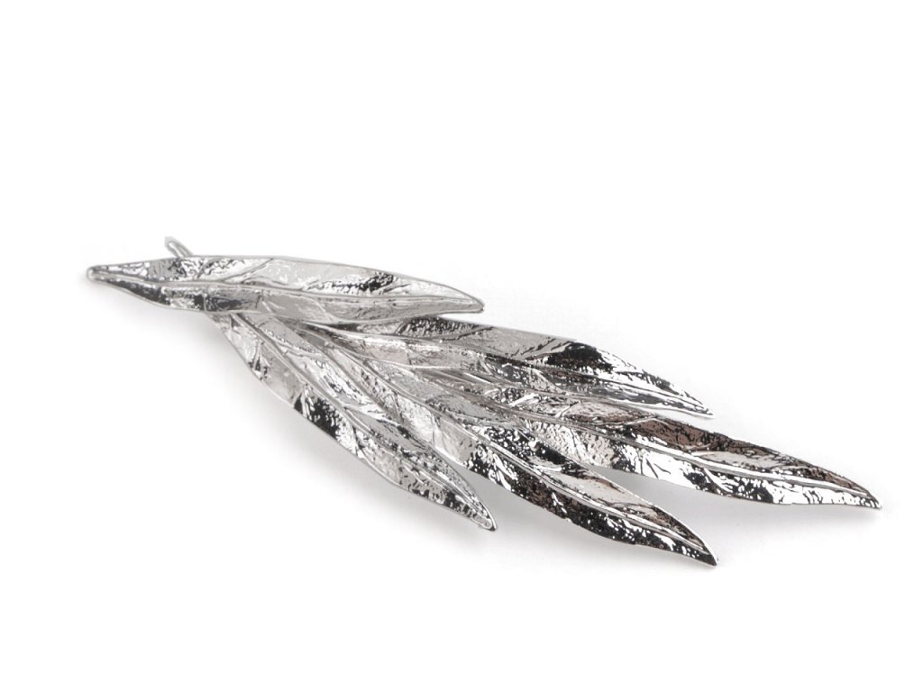 Celokovová francouzská spona s listy elegantně ozdobí váš účes. Hodí se na společenské akce jako jsou plesy, svatby, návštěvy divadel, párty apod., ale využijete ji i na běžné nošení. Je ideálním doplňkem do každého šatníku. Dokáže udržet vlasy pevně na svém místě a přitom dodává účesu půvab a eleganci.