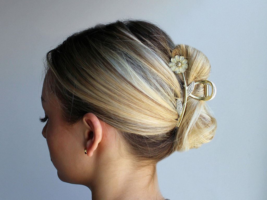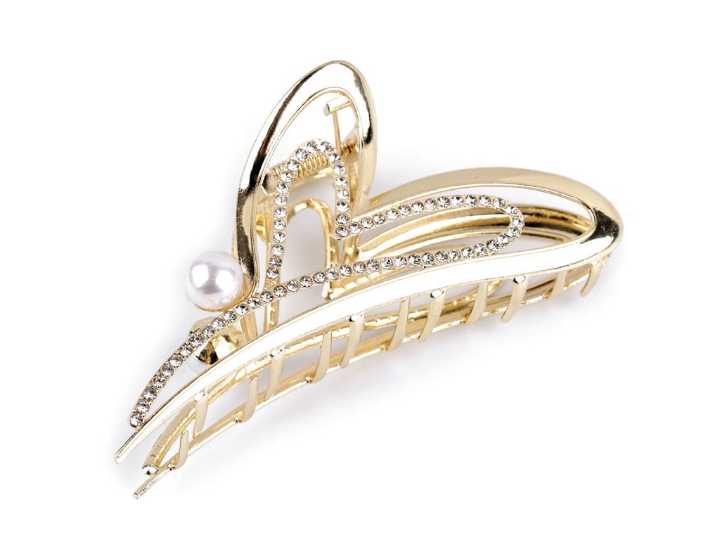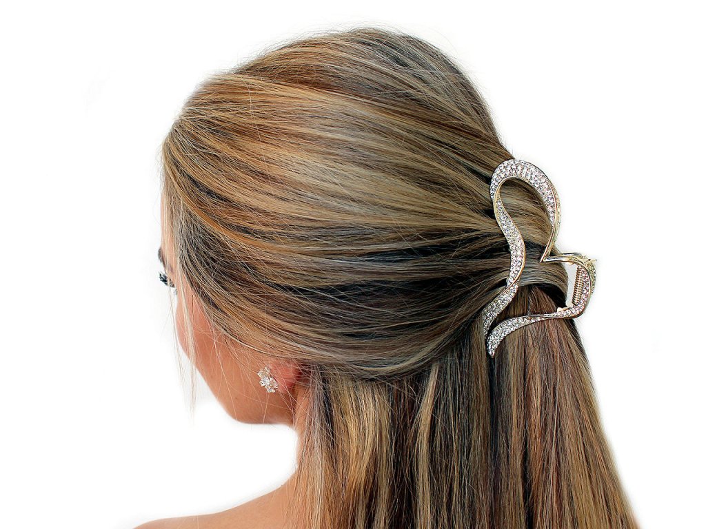 Kovový skřipec do vlasů je bohatě zdobený třpytivými broušenými kamínky, díky nimž je nepřehlédnutelný. Vytvoří slavnostní účes během chvilky, oblíbíte si jej i na všední nošení. Je velice kvalitní, drží přesně na místě díky svému silnému stisku a dlouhých zubů.