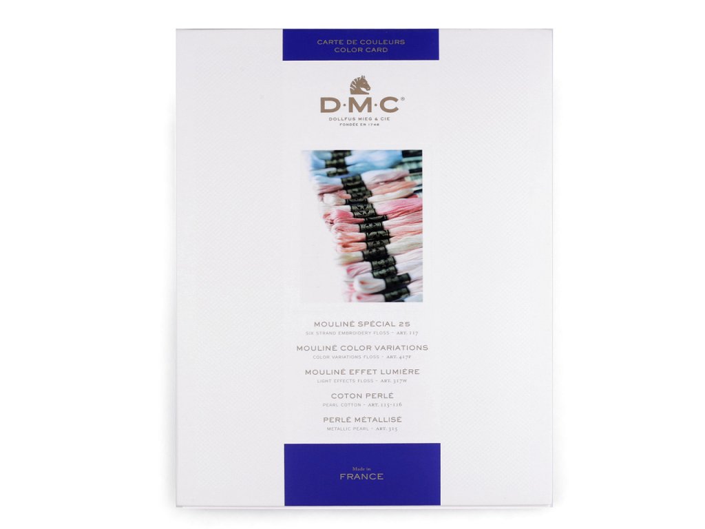 Vzorkovnice je určena na vyšívací příze DMC Mouliné Spécial Cotton, DMC Mouliné Light Effects, DMC Mouliné Color Variations.