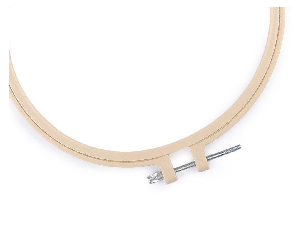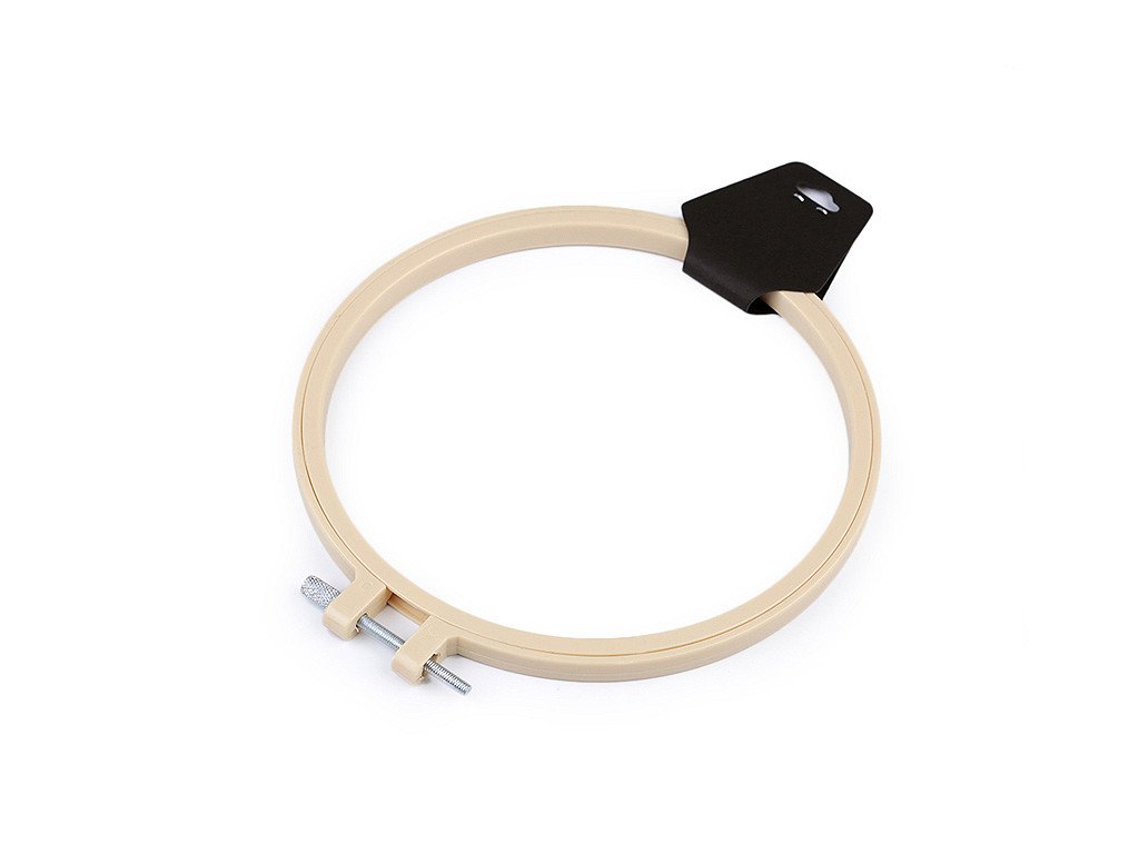 Malý vyšívací plastový kruh je opatřený kovovým stahovacím šroubkem, pomocí něhož přichytnete vyšívací tkaninu. Kromě vyšívání ho můžete použít také na aranžování nebo výrobu lapačů snů.
