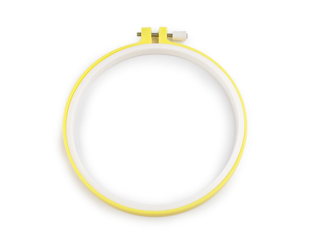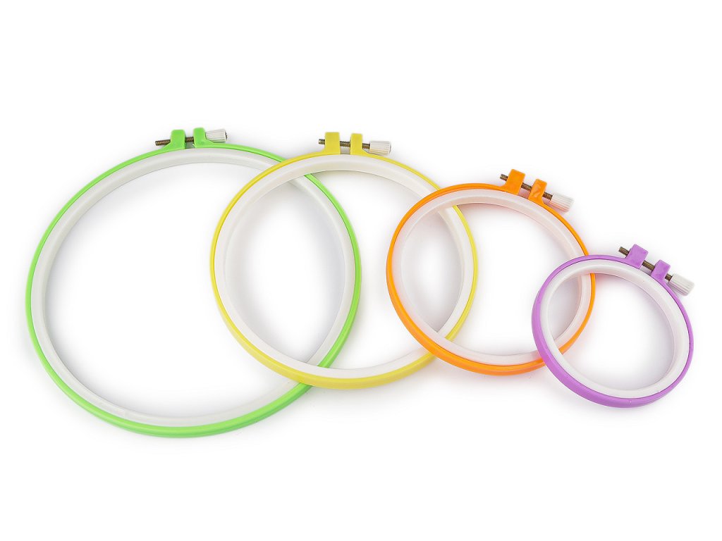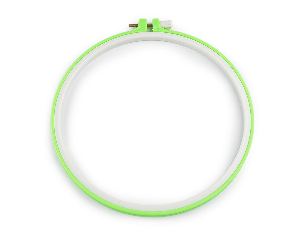 Vyšívací kruh je vyrobený z plastu. Je opatřen kovovým stahovacím šroubkem, pomocí něhož přichytnete vyšívací předlohu.