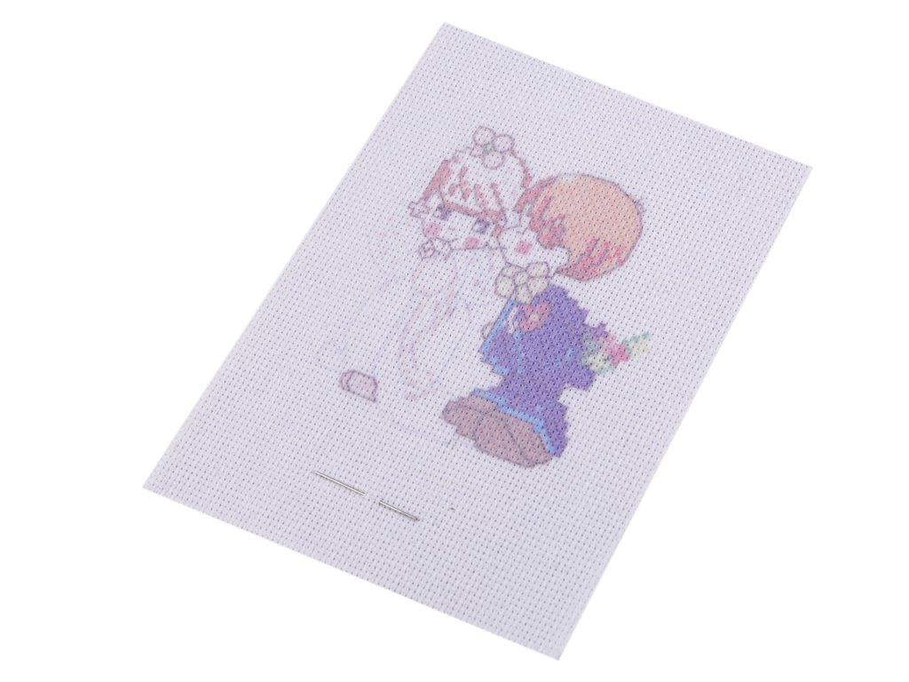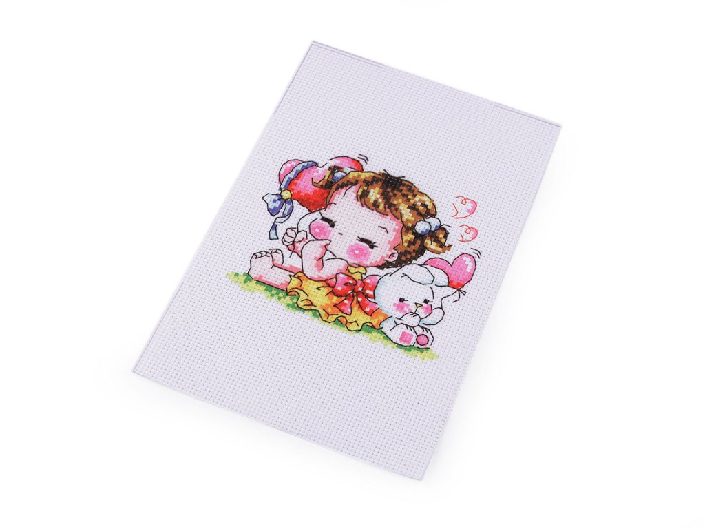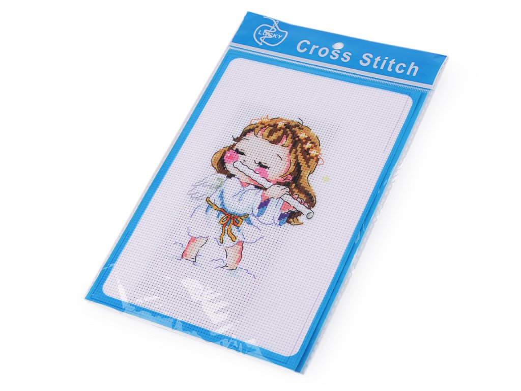 Dětské vyšívání s různými motivy je vhodné na křížkový steh. Součástí balení je jehla a nitě, ale doporučujeme použít příze mouline, které na výšivce lépe vyniknou.