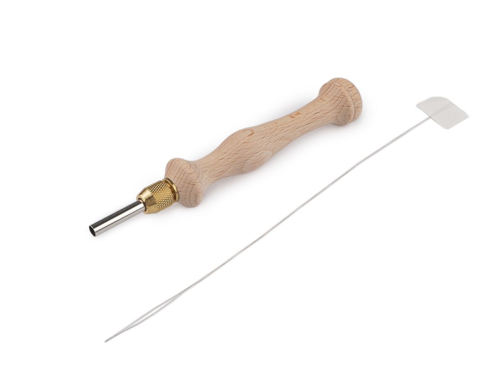 Vyšívání s dutou jehlou je jednoduché a rychlé. Tato jehla má silnější hrot, je proto vhodná na práci s pletací přízí a zdobení svetrů či jiných pletených výrobků. Je šroubovací.
