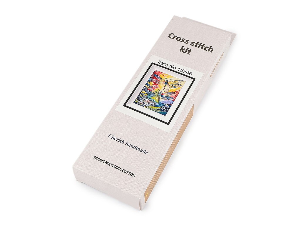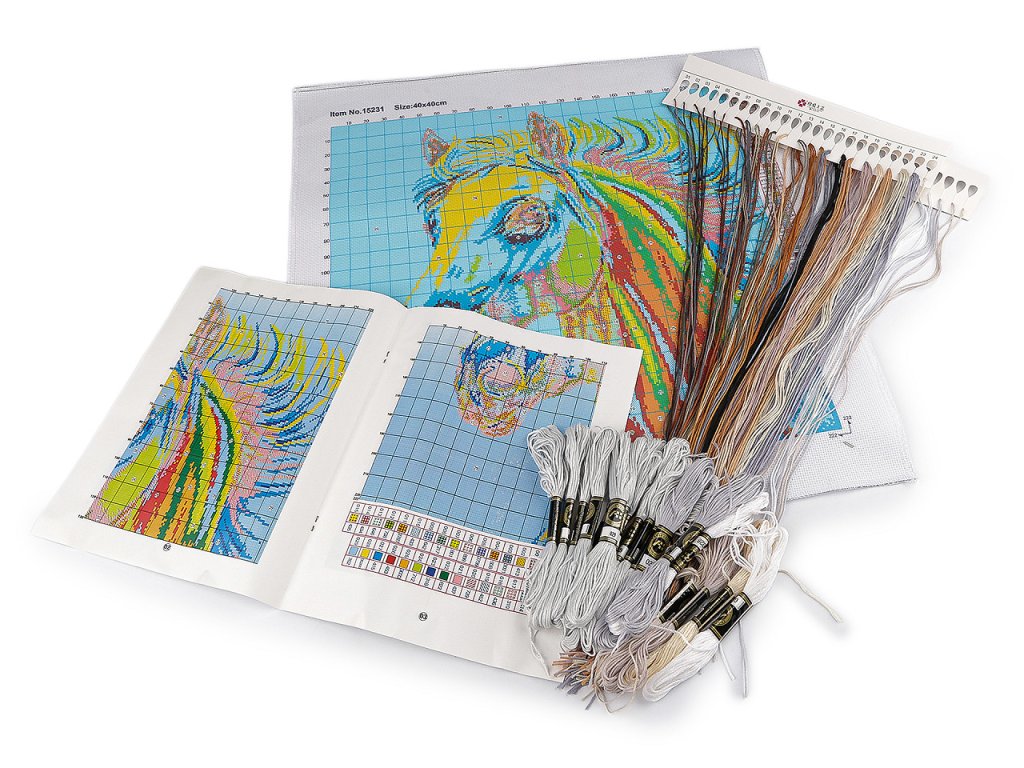 V sadě najdete kvalitní tkaninu s předlohou, sadu barevných mouline přízí, obrázkový návod na stehy a 2 vyšívací jehly.