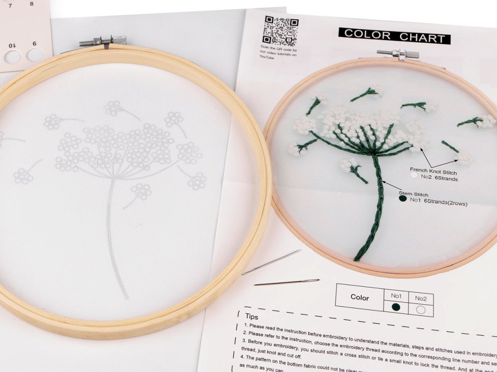 V sadě najdete tkaninu s předlohou, sadu barevných přízí, obrázkový návod, vyšívací jehly a bambusový kruh, který vám poslouží rovněž jako rámeček pro hotový obrázek.