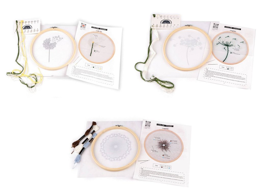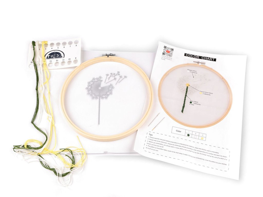Sada vyšívání s předtištěným motivem, pampeliška na tylu