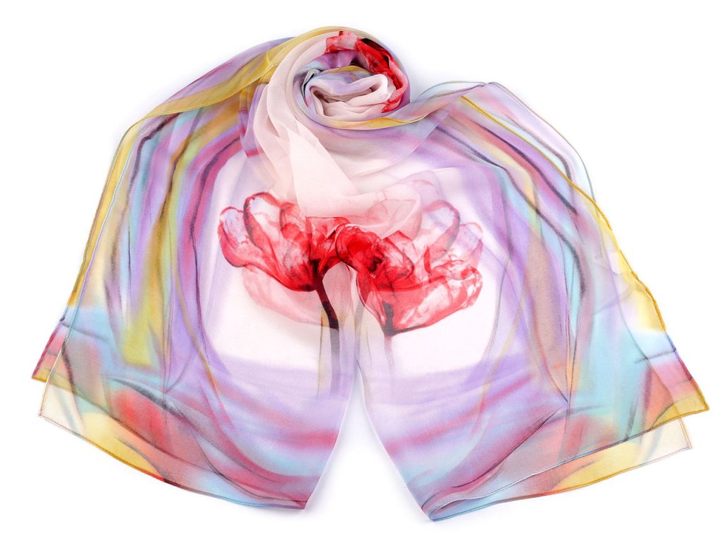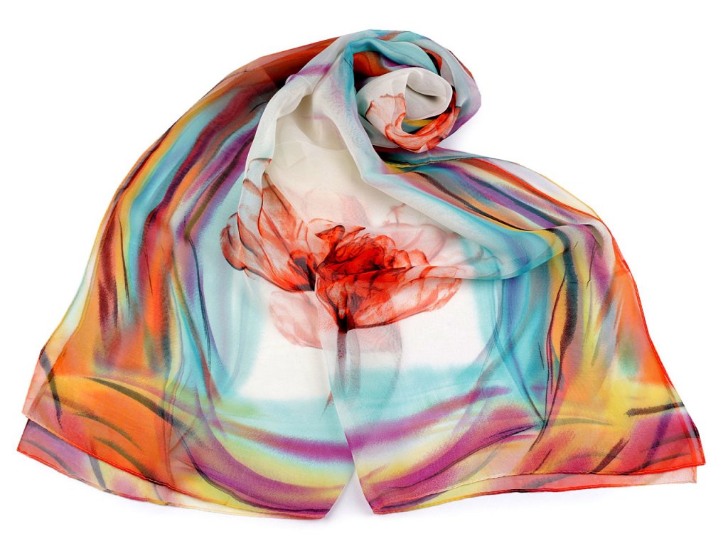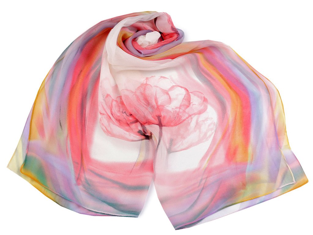 Lehounký letní šátek je velice vzdušný, jemně průsvitný, doladí váš outfit, ať už si vezmete sako, halenku, svetřík či šaty.