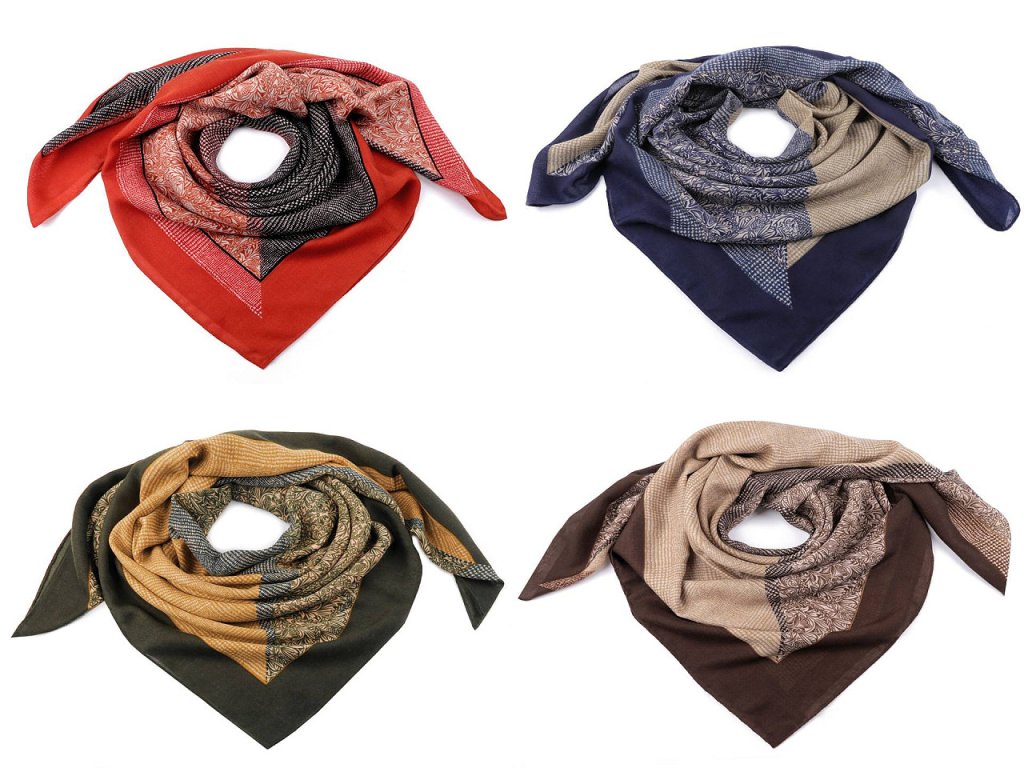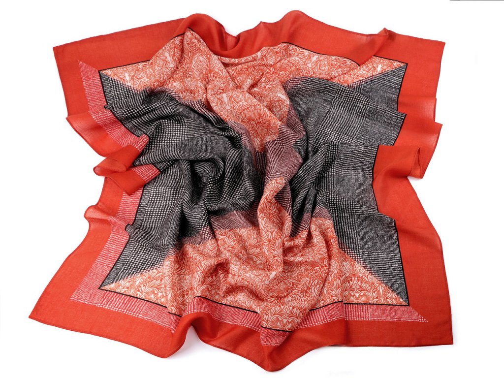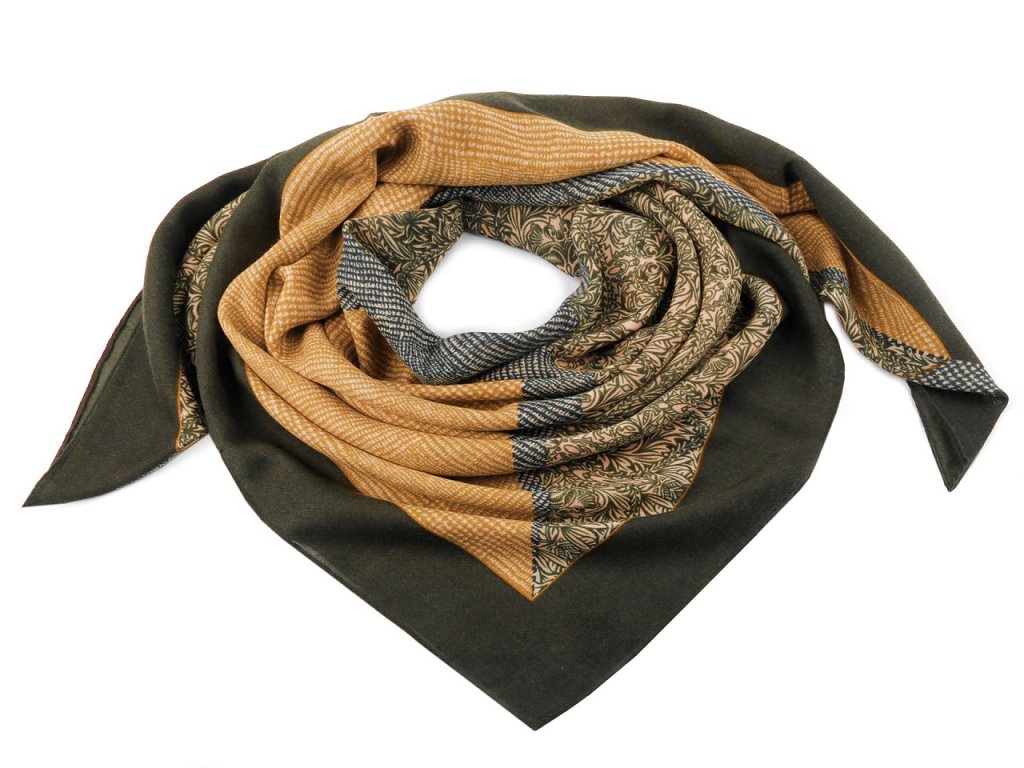Velký vzorovaný šátek využijete na každodenní nošení. Jeho vzdušný materiál krásně splývá, šátek je hebký na dotek, příjemně vás zahřeje.