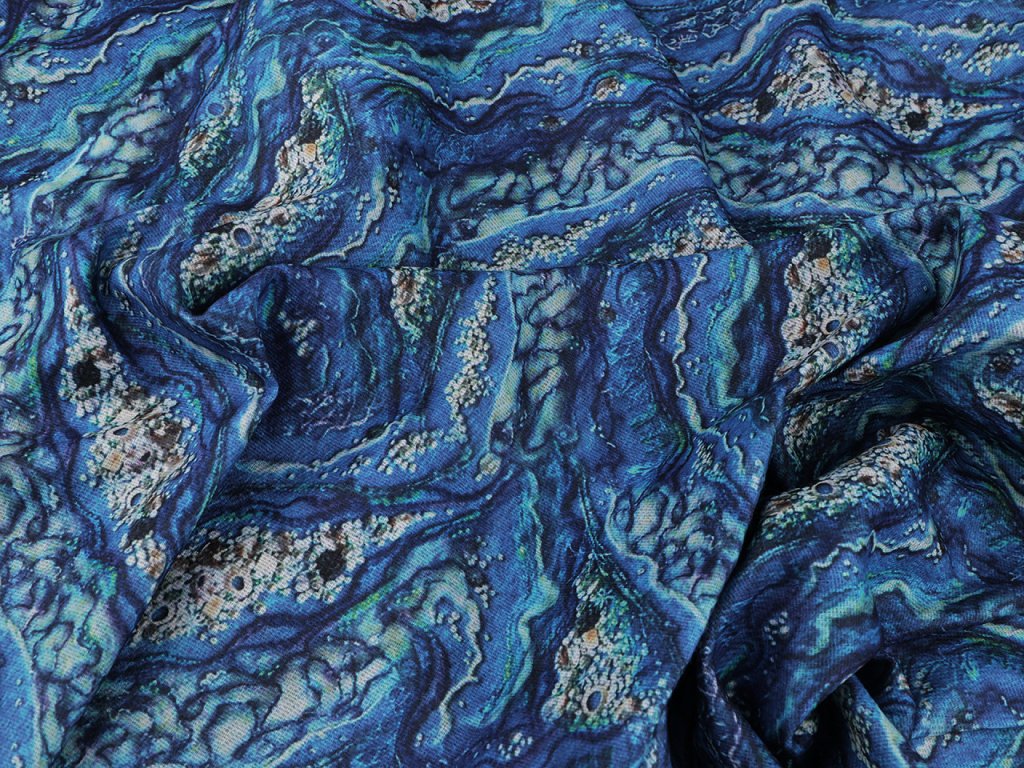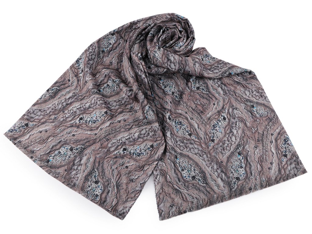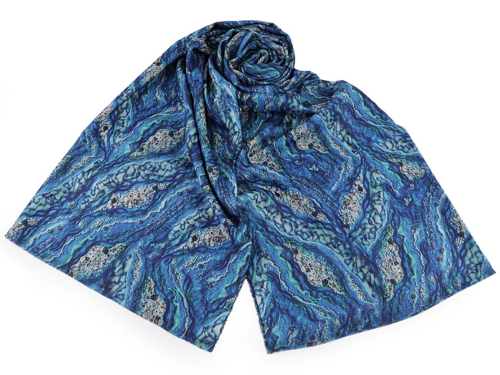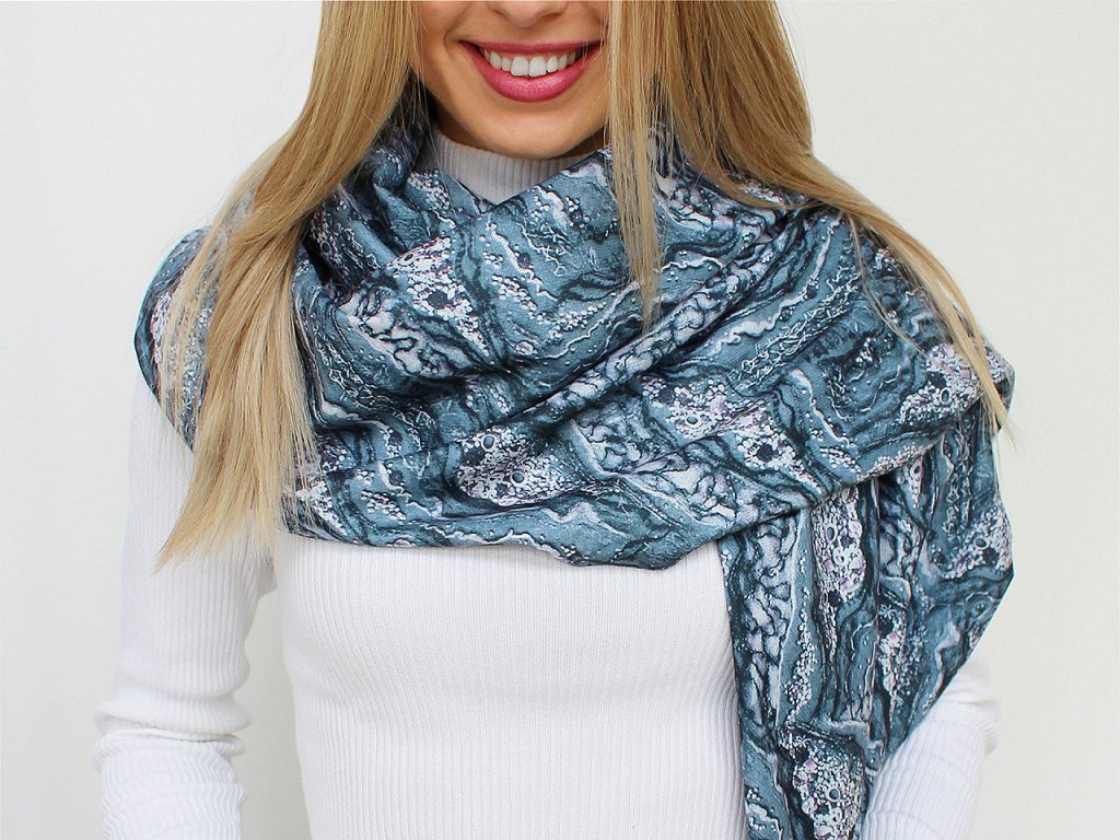 Velká šála s mramorovým motivem je vyrobená z hřejivého materiálu, který je příjemně hebký na dotek. Krásně vás zahřeje v chladném a sychravém počasí. Na koncích je zakončená krátkými třásněmi.