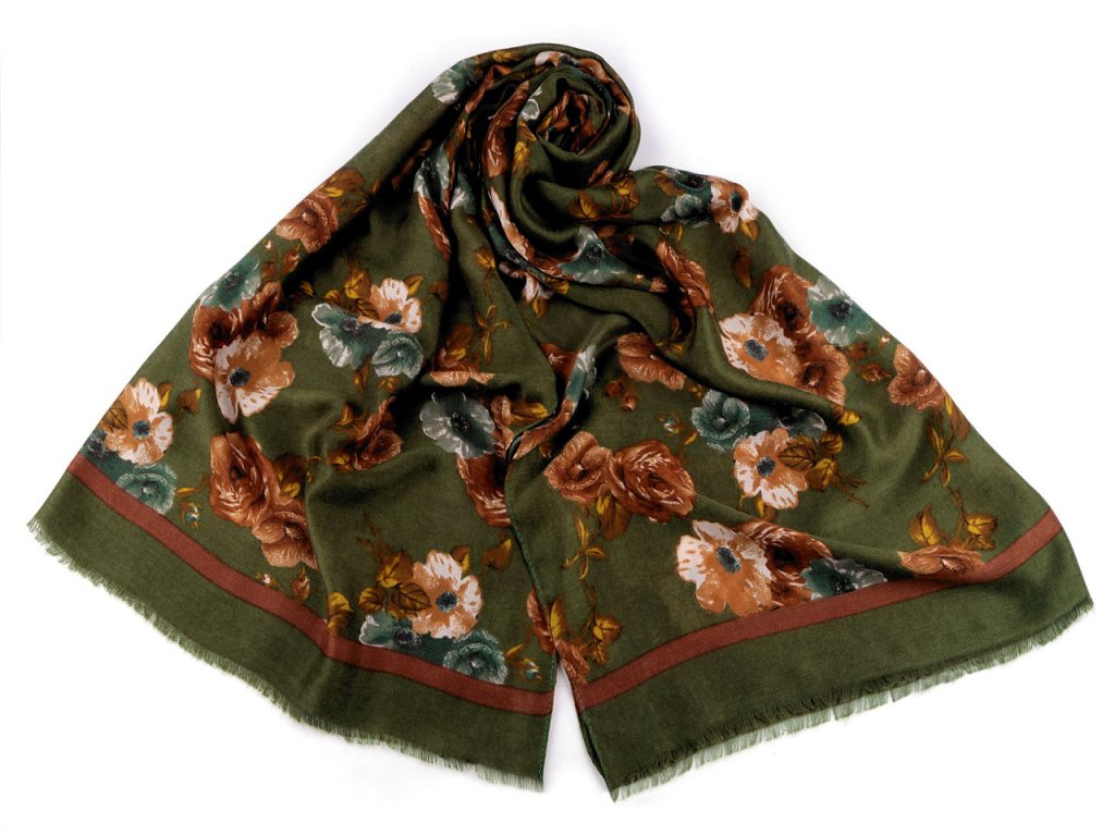 Velký šátek s květy je příjemný a prodyšný, bude pohodlný v jakékoli situaci. Hodí se na jarní a podzimní nošení. Dezén s květy se skvěle kombinuje s jakýmkoliv outfitem. Ať už se chystáte do práce nebo na neformální setkání s přáteli, tento šátek je praktickým a stylovým doplňkem, který dodá vašemu vzhledu šmrnc. Na koncích je zakončený třásněmi dlouhými 1 cm.