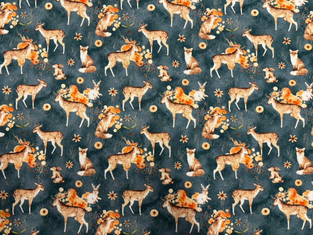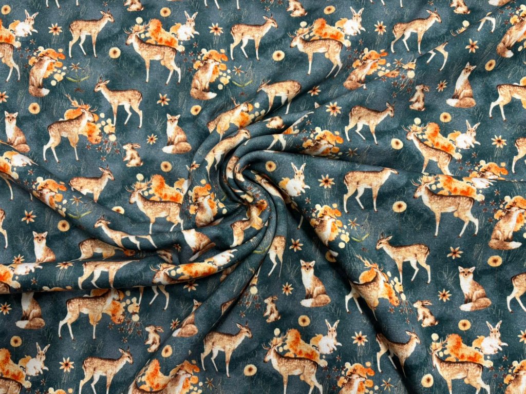 Warmkeeper lesní zvířátka na lahvově zelené 350 g/m2