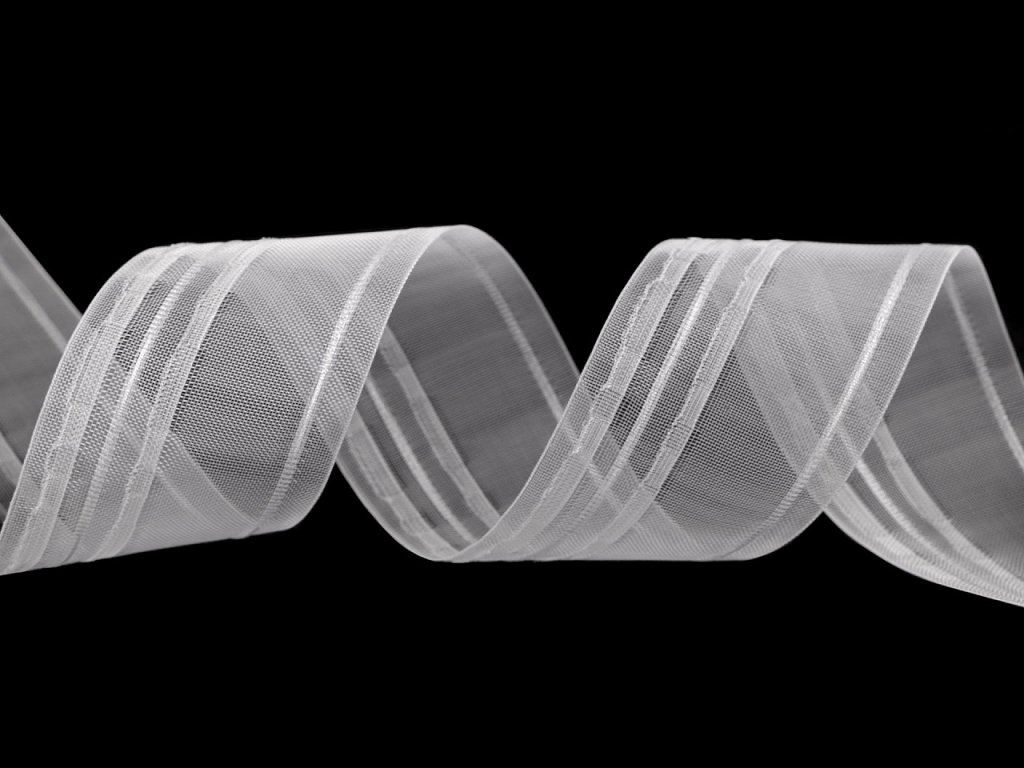 Doporučené řasení je 1:2 - na 1 m záclony po nařasení je potřeba použít 2 m záclony před nařasením a stejný poměr stuhy.