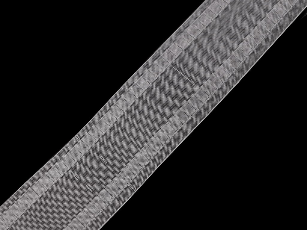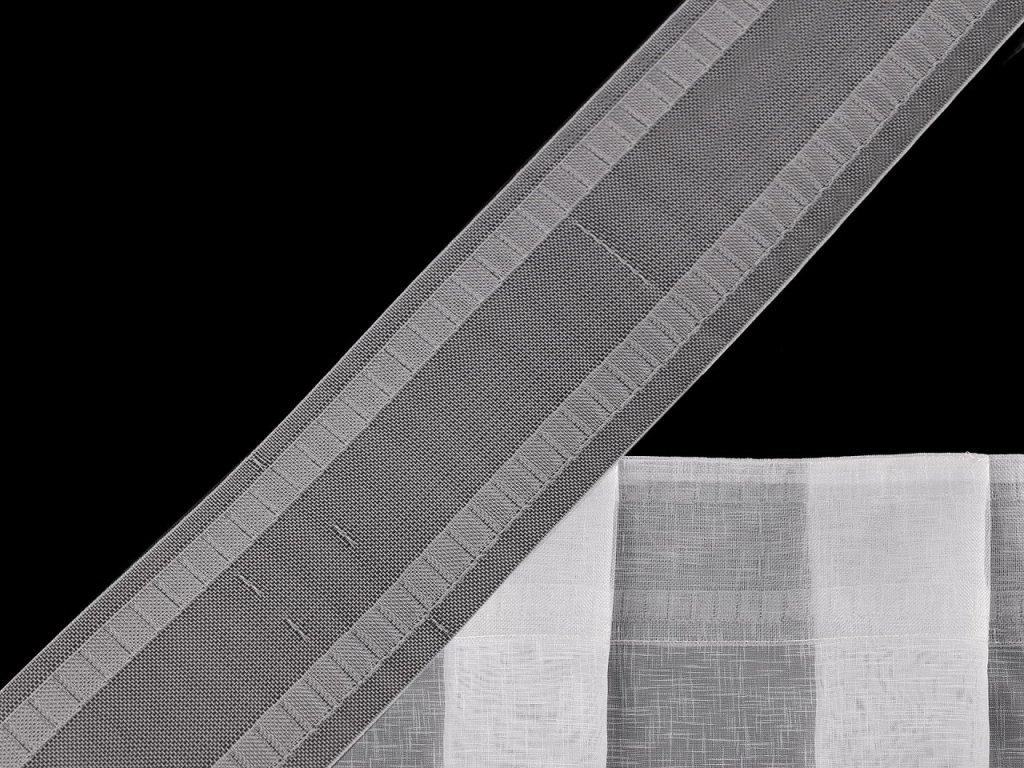 Pevná transparentní záclonovka zaručí rovnoměrné nařasení záclon a závěsů. Je univerzální a řasení může být jakékoliv, pro zjednodušení jsou na záclonovce pravidelné značky. Po celé délce ji v horní i dolní části lemují očka na provlečení háčků.