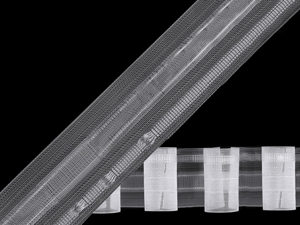 Záclonovka má na zadní straně 2 šňůrky, které po zatáhnutí vytvoří pravidelné vlnky. Záclony a závěsy díky tomu vypadají efektně.