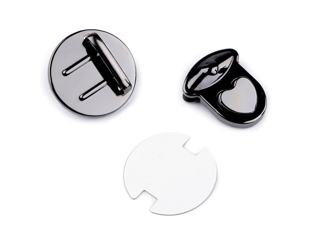 Sada zapínání na kabelku či tašku se skládá ze tří dílů. Jeden díl se připevní na vnitřní část tašky, druhý (s nožkami) na vnější část a třetí díl na její chlopeň. Díl na chlopeň se upevní tak, že rozevřete čelisti, na kterých jsou zoubky a mezi ně vložíte materiál, na který chcete zapínání upevnit. Následně čelisti sevřete, zoubky tak zamezí pohybu látky. Zapínání zdobí knoflík ve tvaru srdíčka.