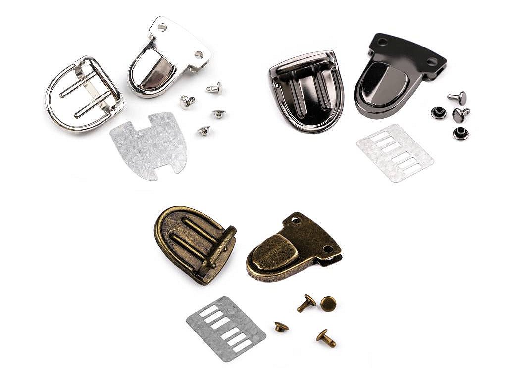 Zapínání na kabelku či tašku se skládá ze [dvou dílů, plíšku a nýtku]. [K dílu bez dírek patří plíšek, který se k dílu připevní z vnitřní části tašky. Plíšky se mohou u jednotlivých balení lišit. Druhý díl s nýtky patří na chlopeň kabelky.] Pak už je jen stačí zasunout do sebe tak, až uslyšíte cvaknutí. Potom je teprve kabelka bezpečně uzavřena.