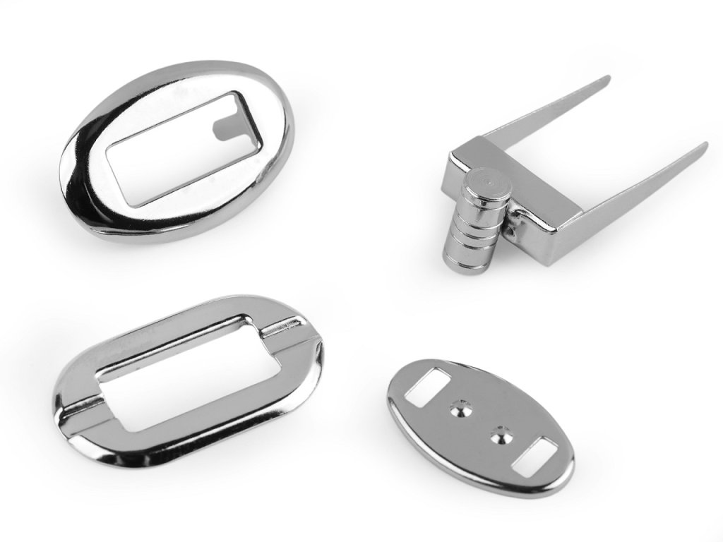 Kabelkové otočné zapínání se skládá ze čtyř částí, vždy předního dílu a protikusu. Jedna dvojice se připevní na vnitřní část kabelky, druhá dvojice na chlopeň kabelky. Pak už jen stačí zasunout do sebe, otočit a kabelka je bezpečně uzavřena. Doporučujeme pro subtilnější kabelky, tento typ zapínání na nich lépe vynikne.