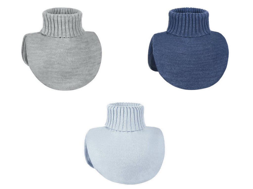 Dětský pletený nákrčník je vhodný do chladného rořního období. Je lehoučký a velice pohodlný. Lem okolo krku má pružný. Přední i zadní část nákrčníku je dvojitá, podložená hřejivým fleecem. V případě velkého chladu mohou děti zvednout lem nahoru a chránit si tak dolní část obličeje.