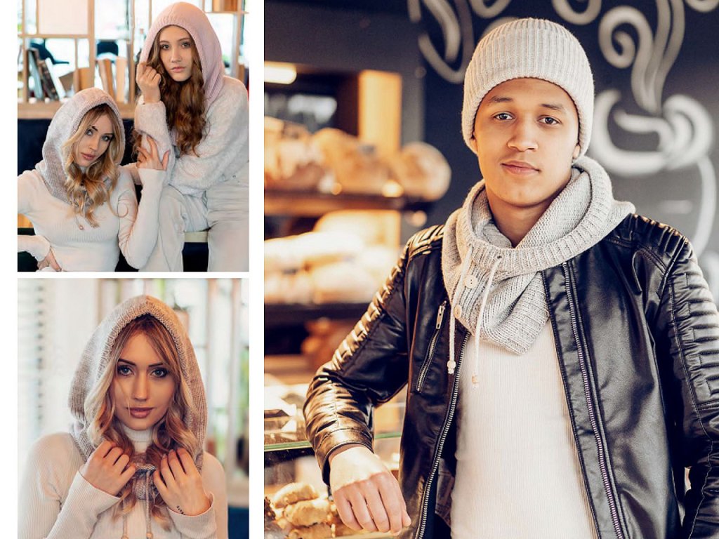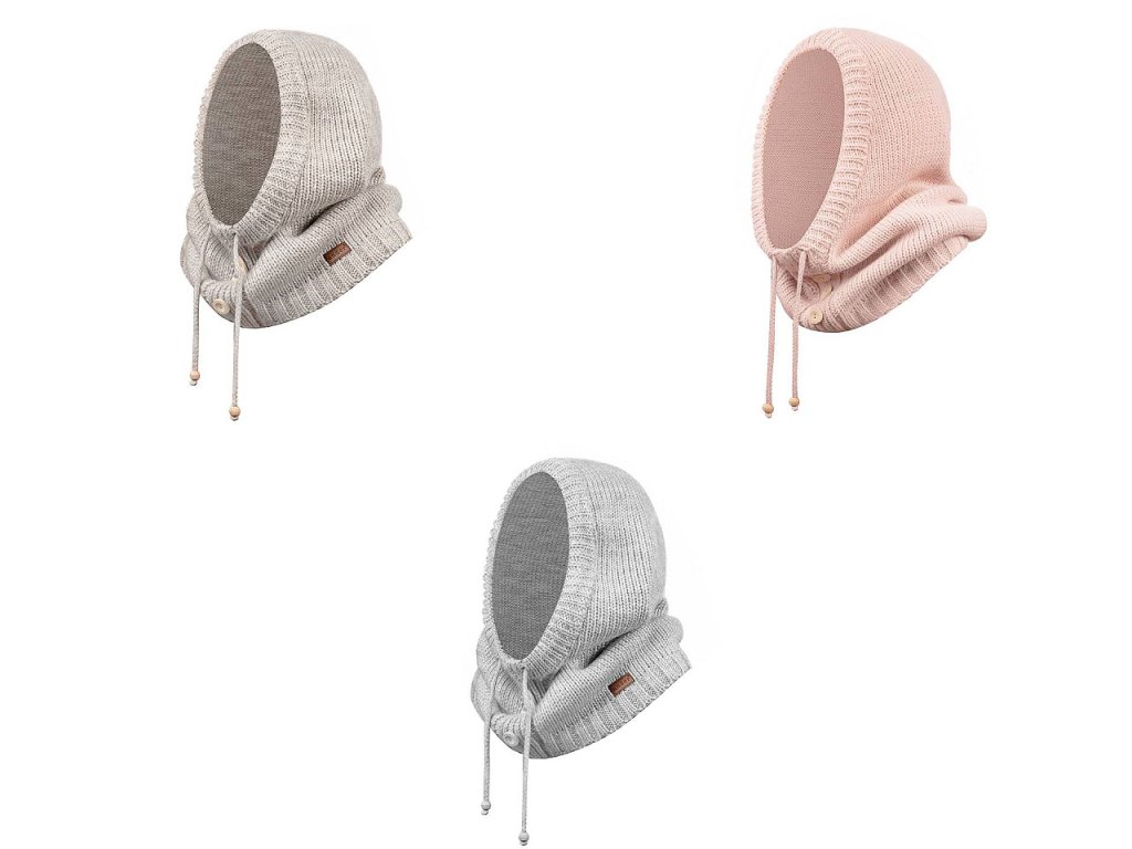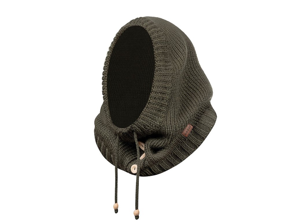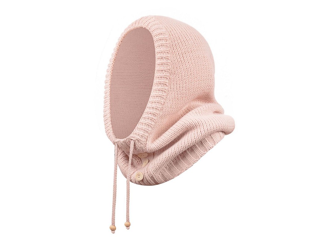 Pletený nákrčník s kapucí bude ideálním společníkem v chladném počasí. Skvěle doplní kabáty i sportovní bundy. Hodí se na běžné nošení, do společnosti i na hory. Kapuce má stahovací šňůrku s dřevěnými korálky. Můžete ji nosit na hlavě nebo svěšenou přes ramena. Uprostřed je nákrčník ozdobený dřevěnými knoflíky, na boku má kožený štítek. Pletenina je měkká a příjemná na dotek.