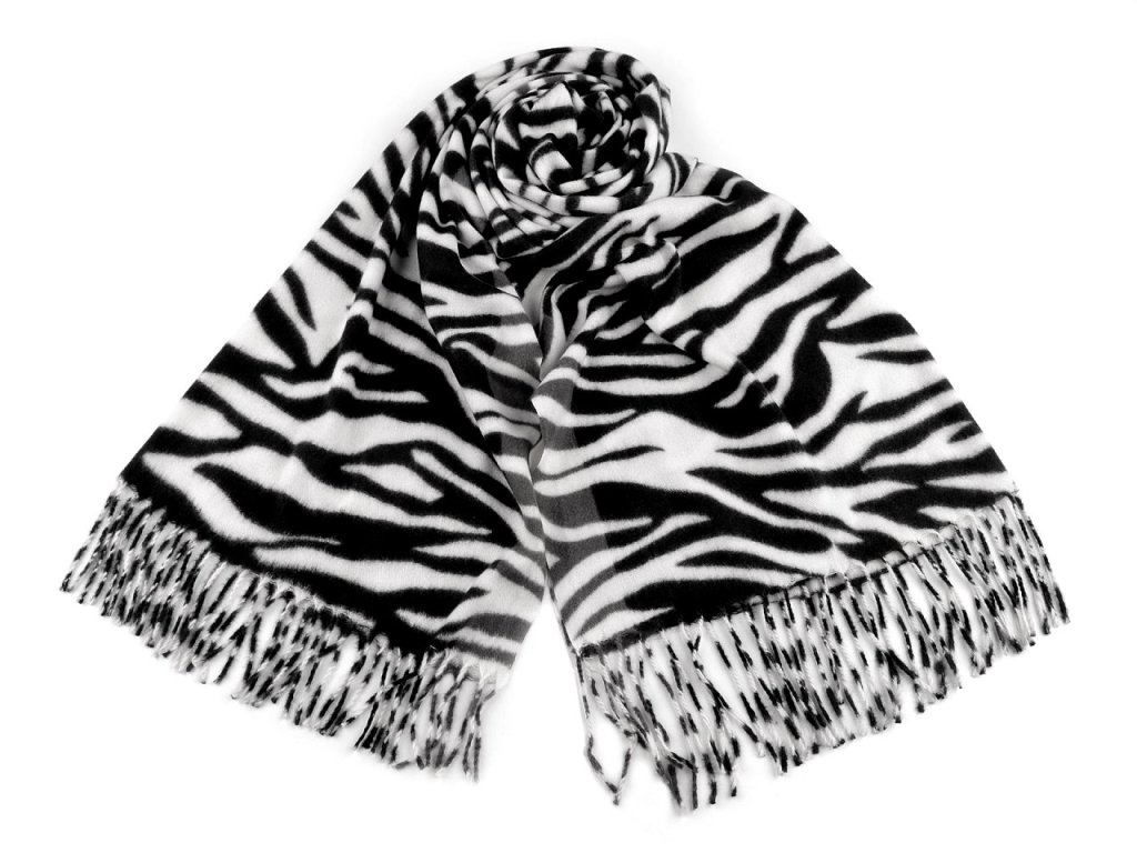 Elegantní šátek se zvířecím motivem představuje ideální doplněk pro ženu, která touží po spojení stylu a pohodlí. Skvěle vás zahřeje v sychravých a studených dnech. Je vyrobený z příjemně hebkého a jemného materiálu, na koncích je zakončený třásněmi.