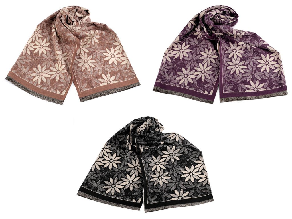 Šátek / šála typu kašmír s třásněmi, květy 60x180 cm