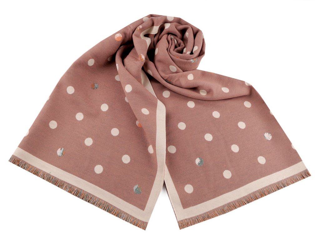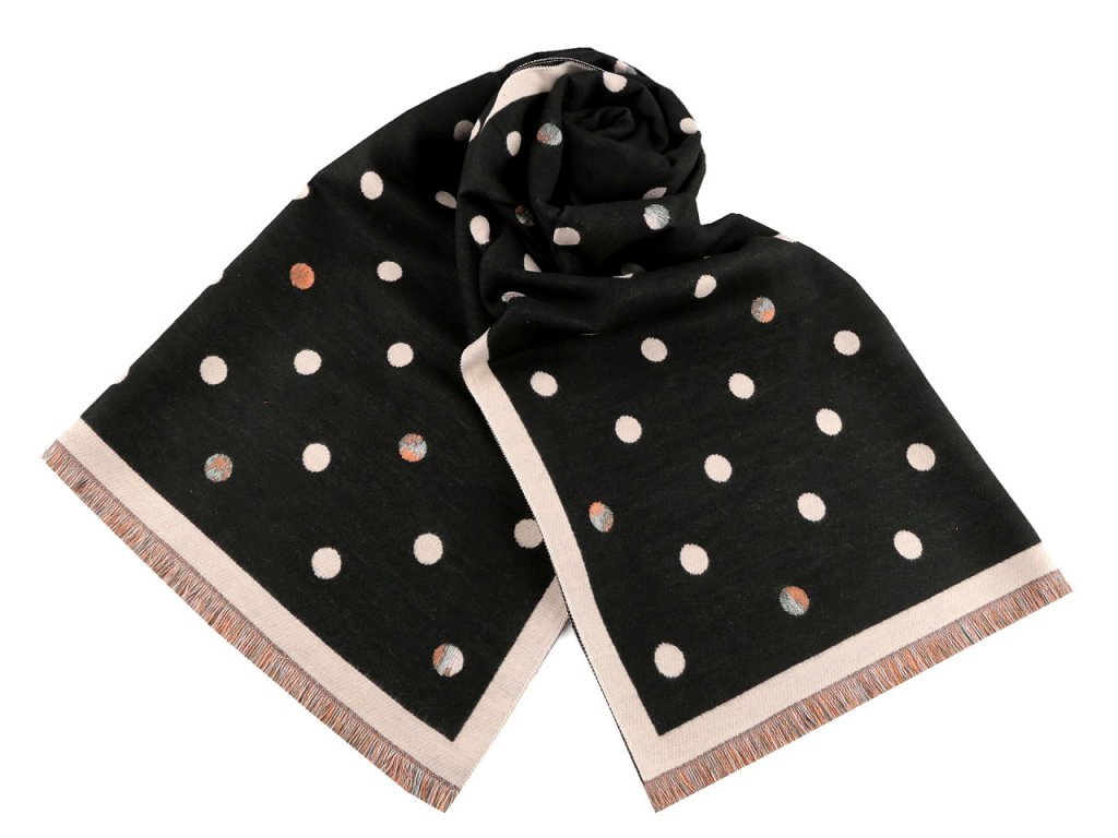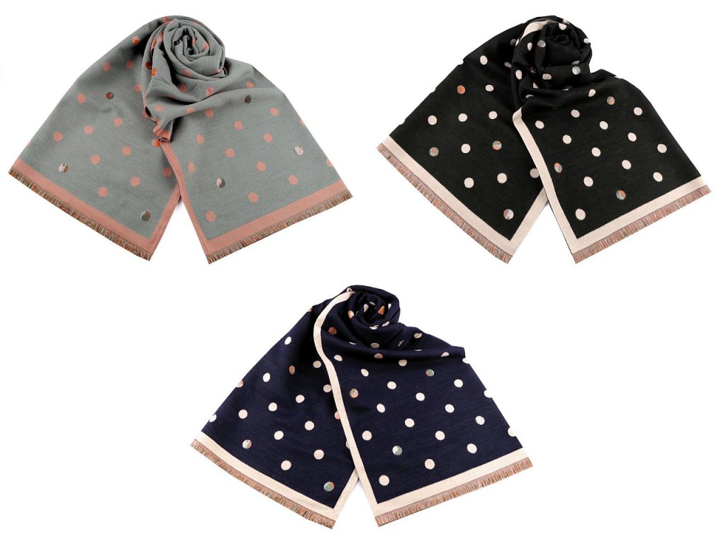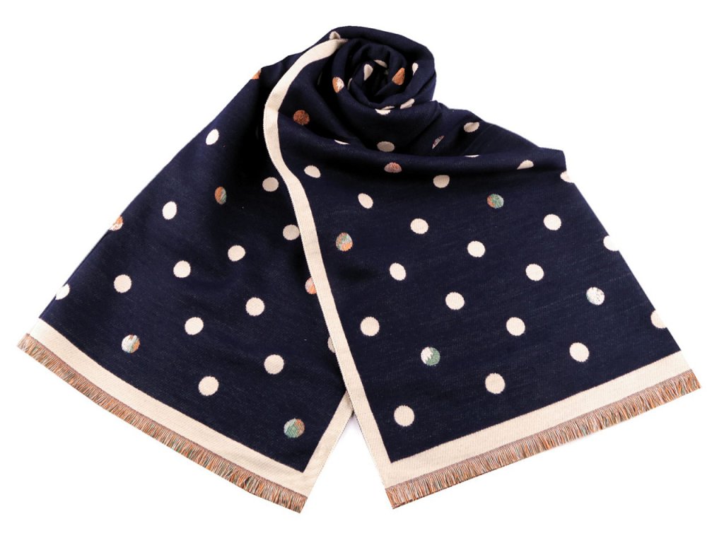 Šátek / šála typu kašmír s třásněmi, puntík 68x190 cm