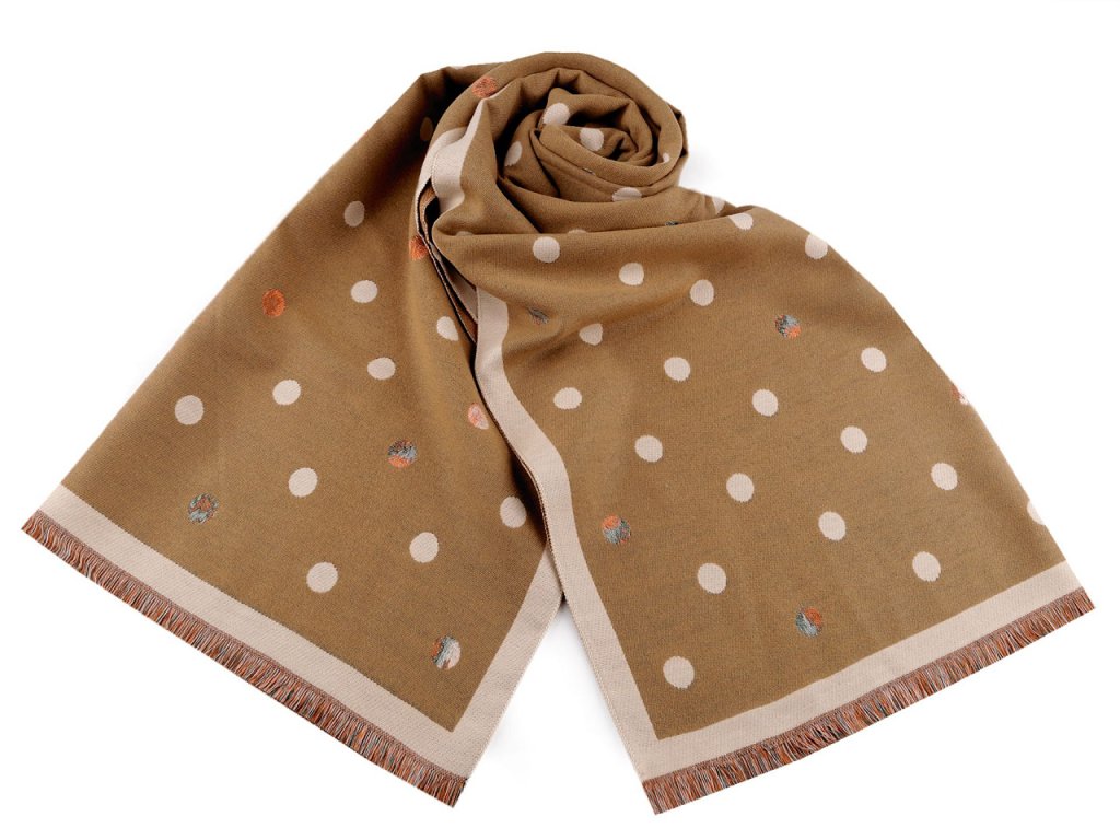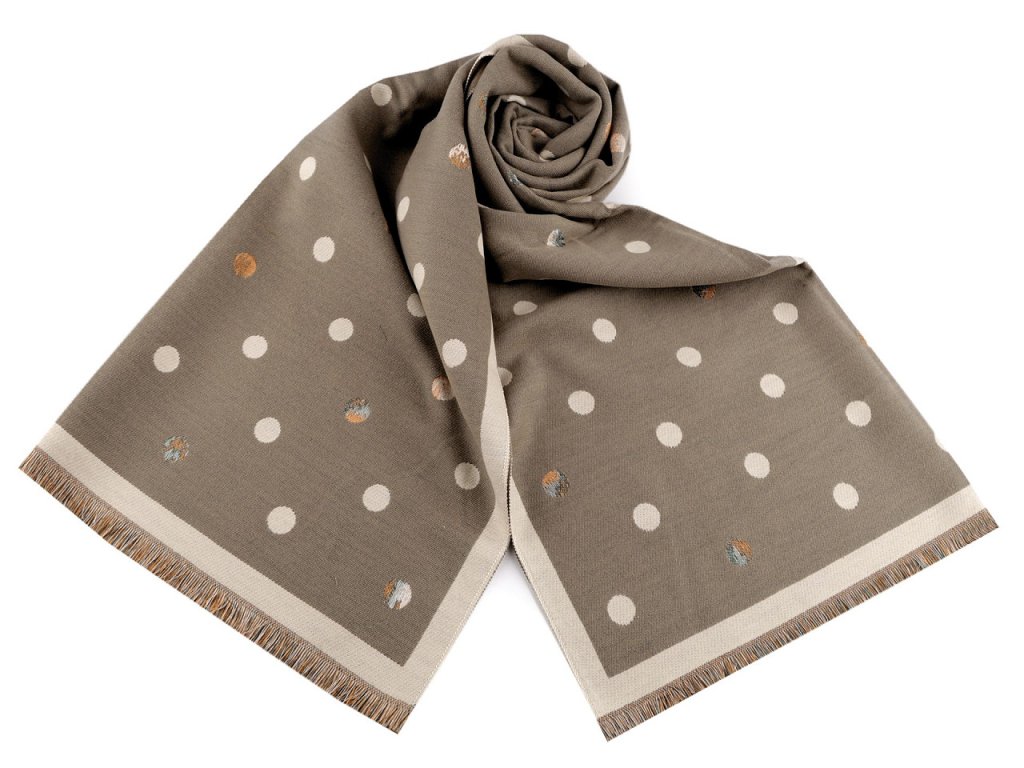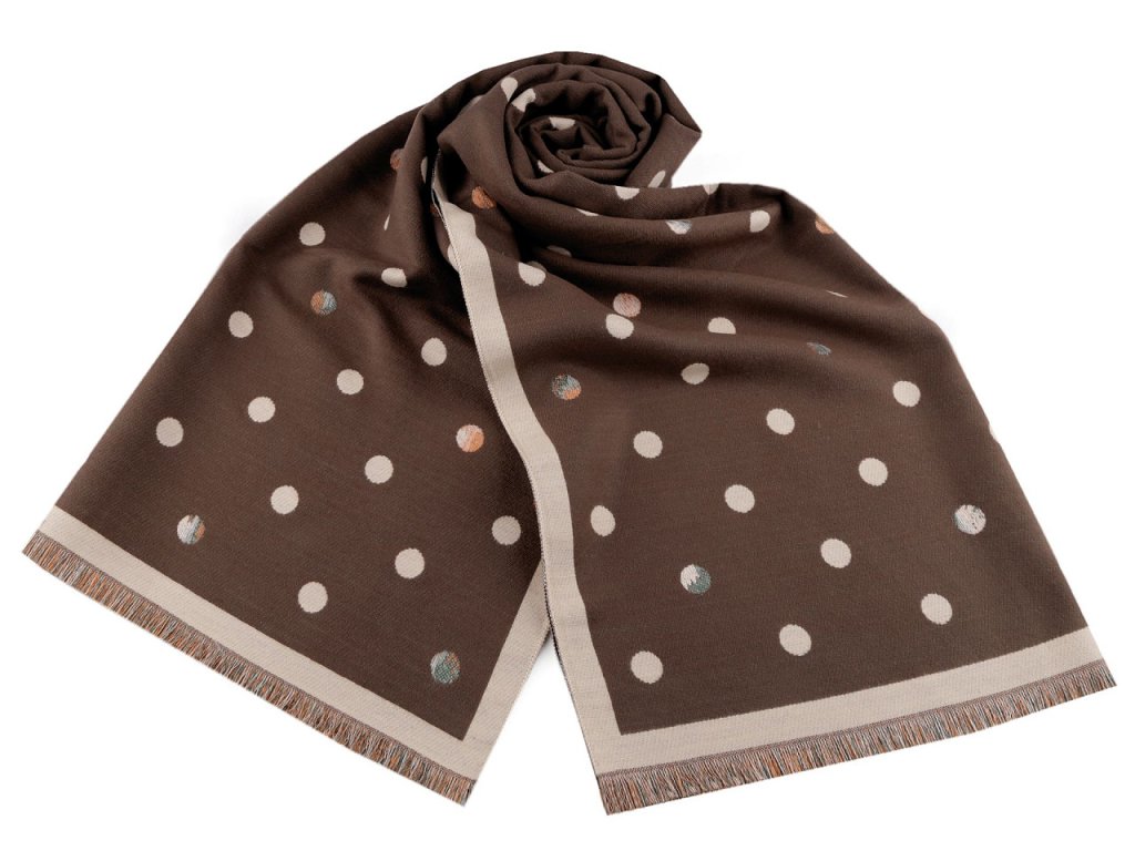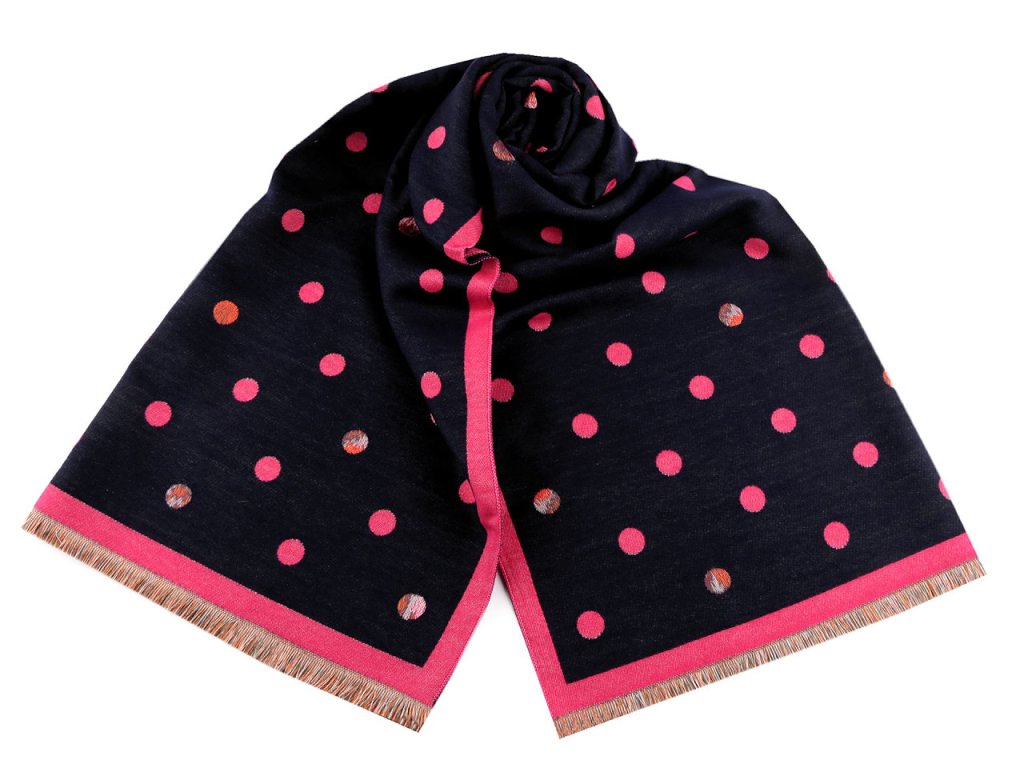 Šátek / šála typu kašmír s třásněmi, puntík 68x190 cm