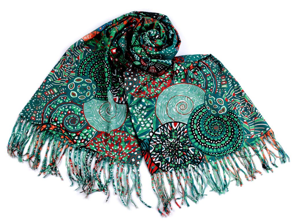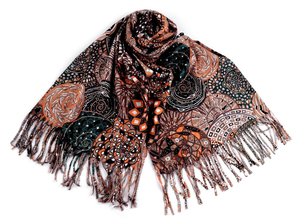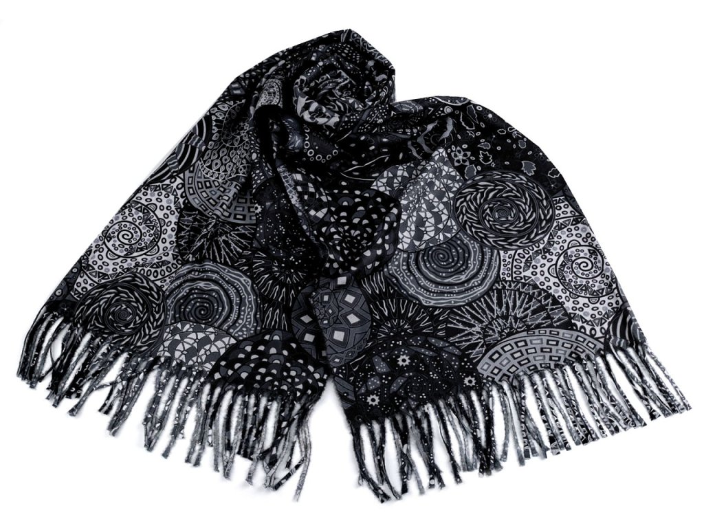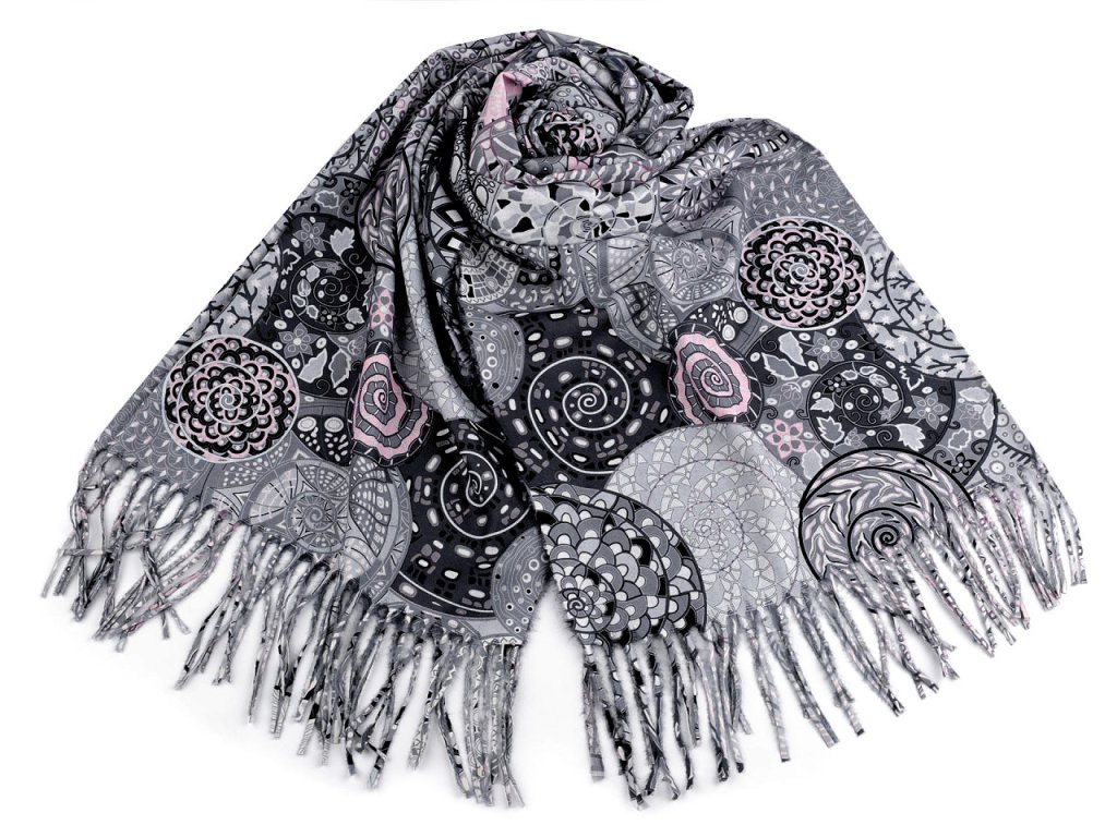 Šátek / šála typu kašmír s třásněmi, spirály 70x180 cm