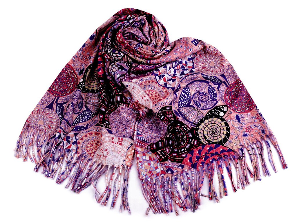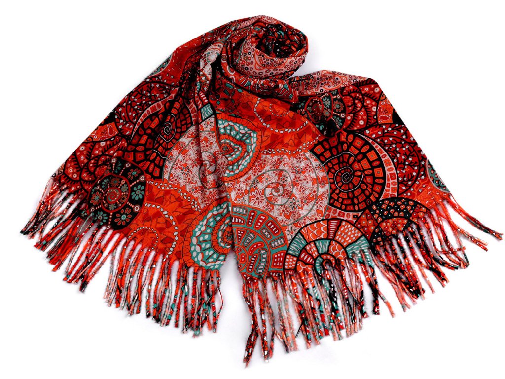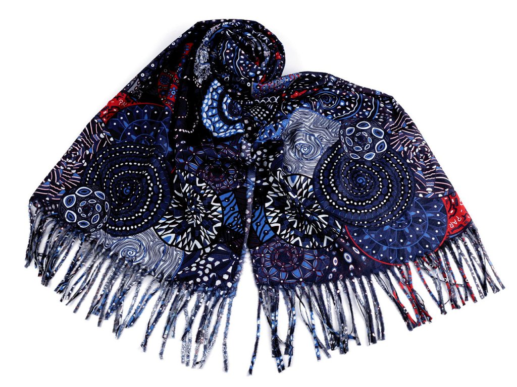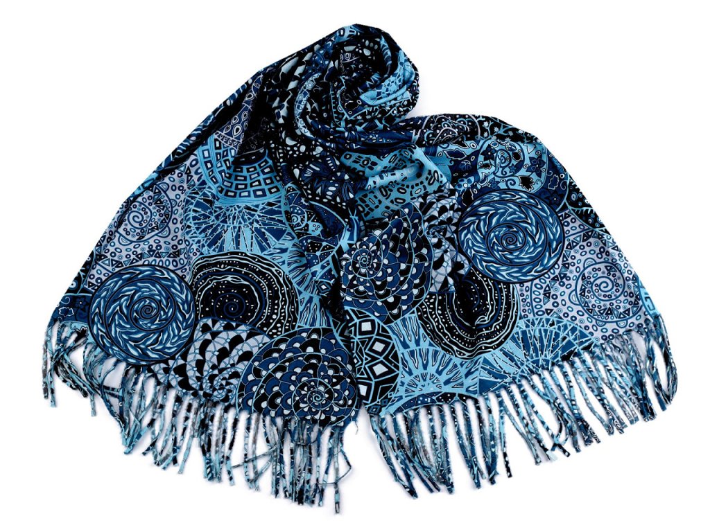 Šátek / šála typu kašmír s třásněmi, spirály 70x180 cm