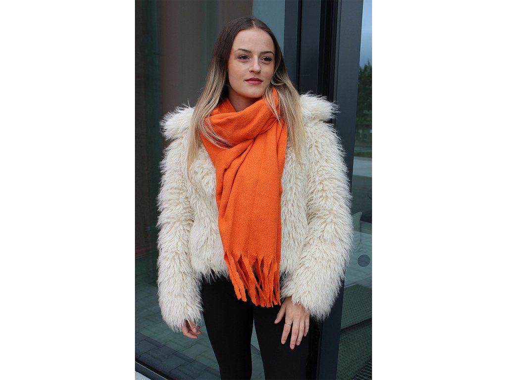 Velká teplá šála představuje ideální zimní doplněk pro všechny, kteří touží po stylu a pohodlí. Je oboustranná, skvěle vás zahřeje v sychravých a studených dnech. Je vyrobená z příjemně hebkého buklé, na koncích je zakončená dlouhými třásněmi. Její univerzální charakter je ideální na běžné nošení, ale i pro cestování, pikniky, či jako elegantní přehoz při posezení na terase. Její použití je opravdu široké, přinese vám pohodlí v každé situaci.